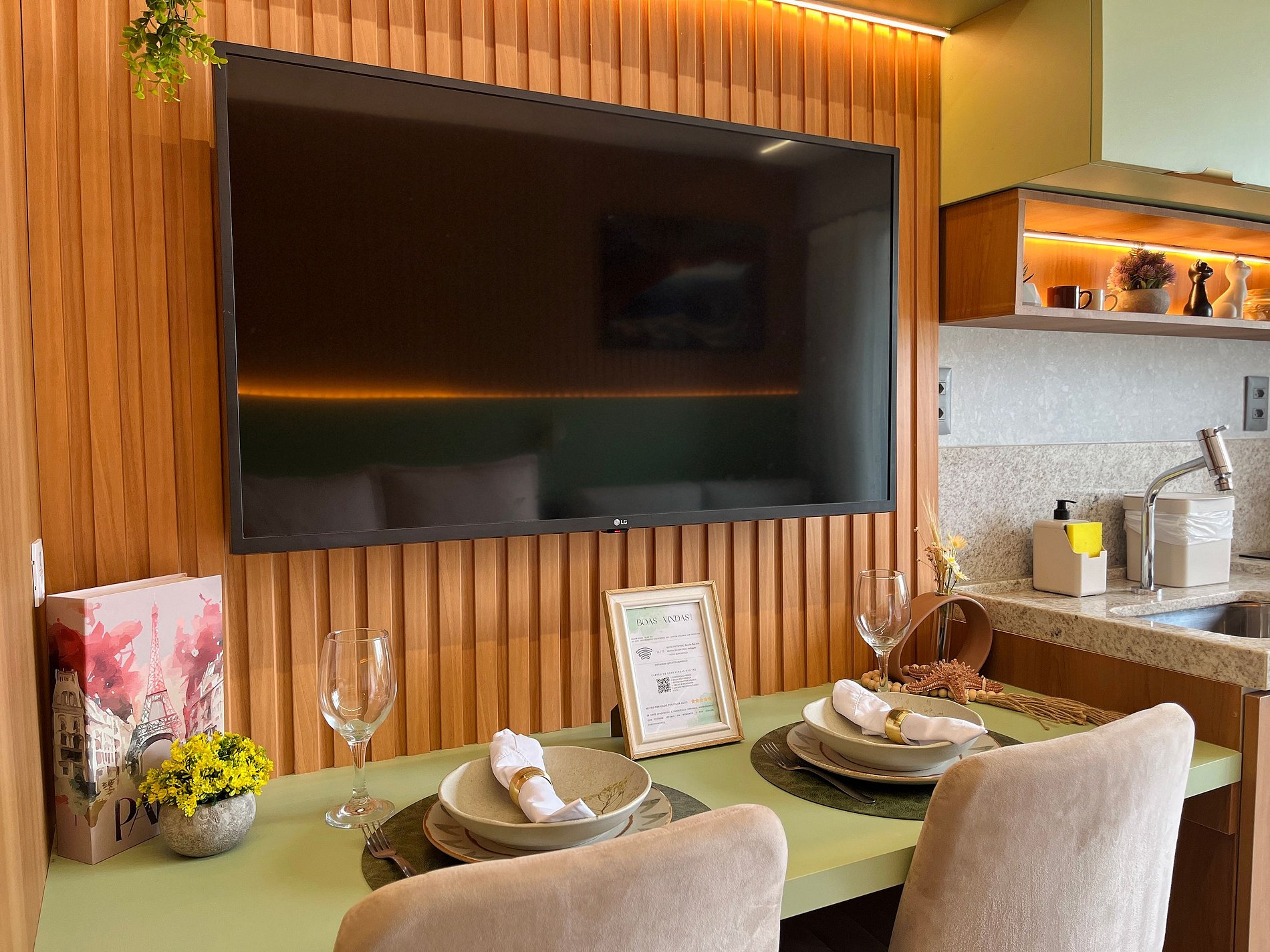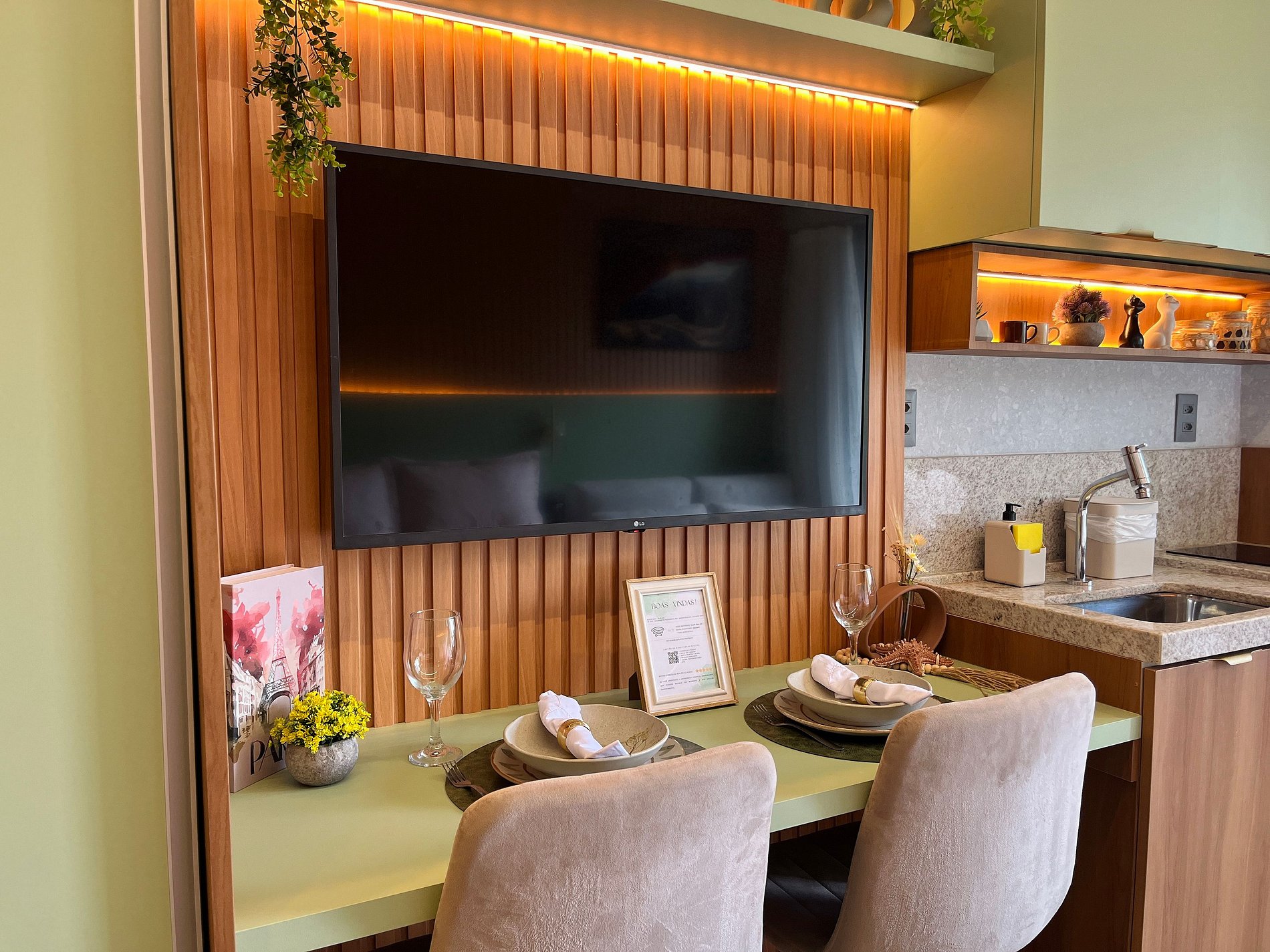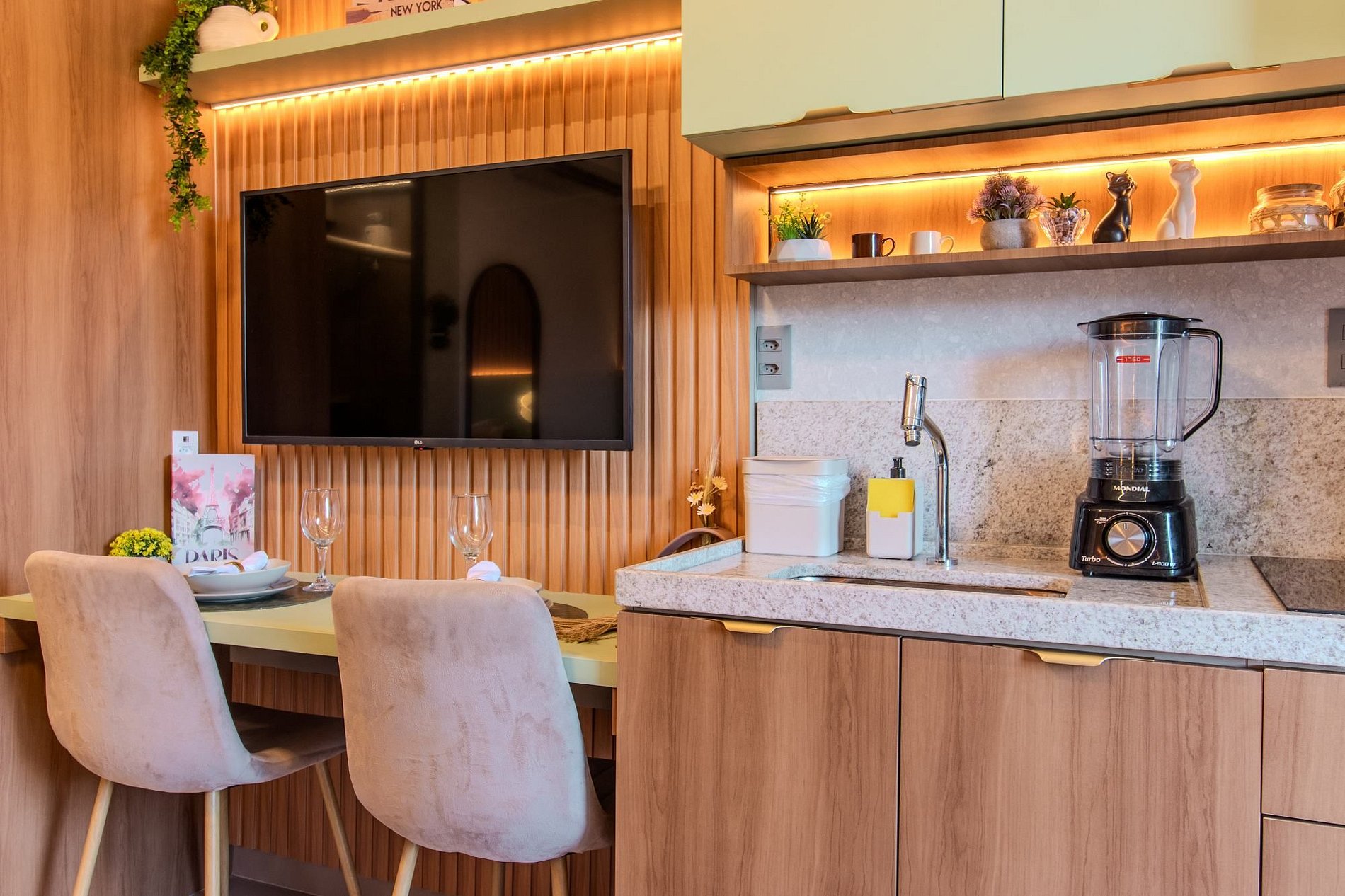 - Itens como detergente, esponja, escorredor de pratos, pano de prato e perfex (No item comodidade não dispomos de óleo, tigelas, vasilhas, pimenta e Hashi)