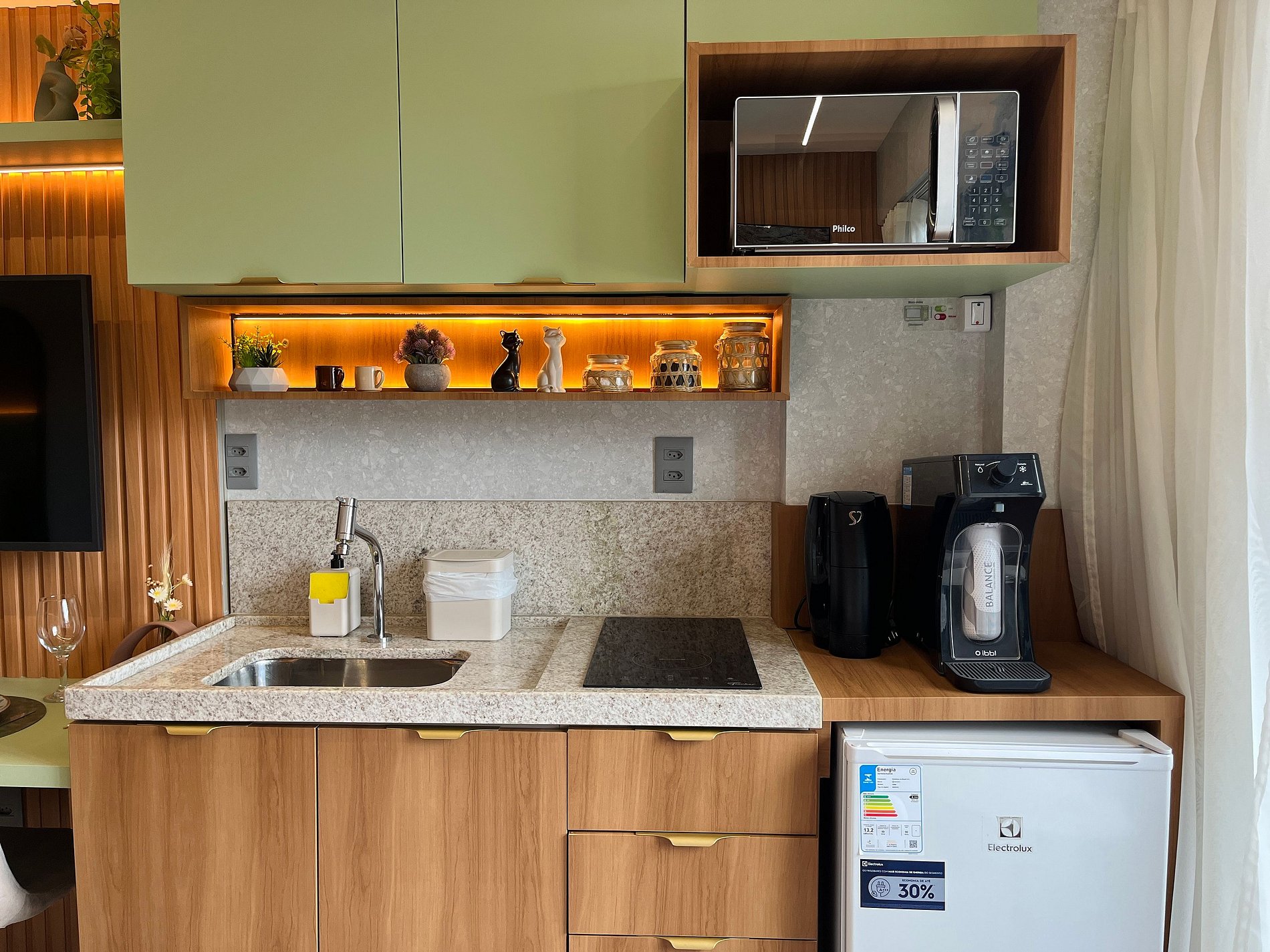 - Cafeteira (cápsulas por conta do hóspede)