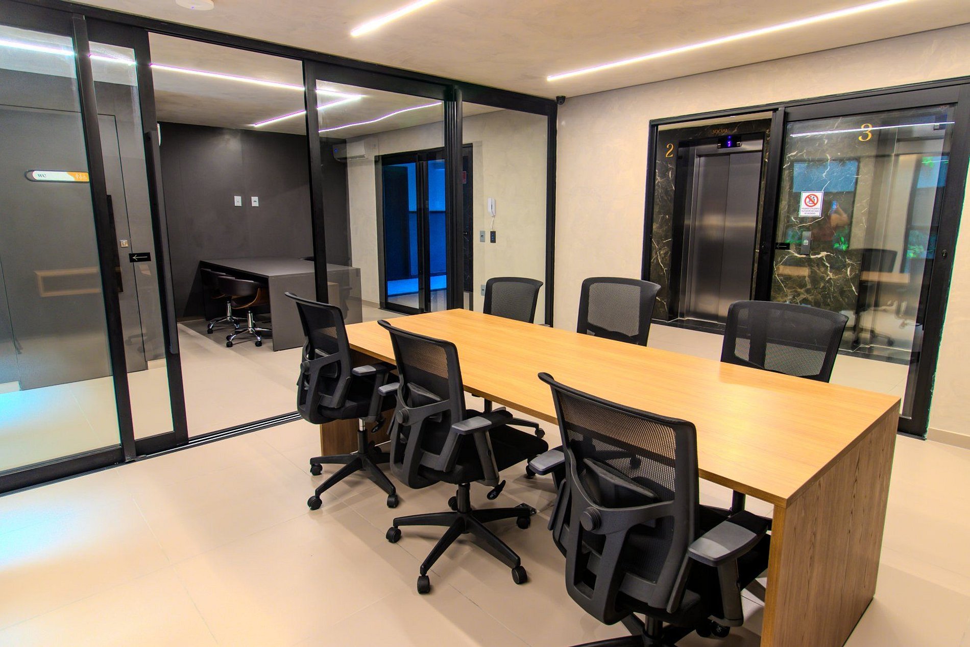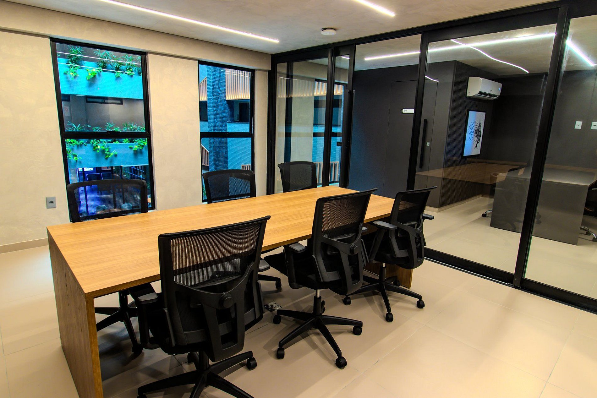- Coworking e salas de reunião;