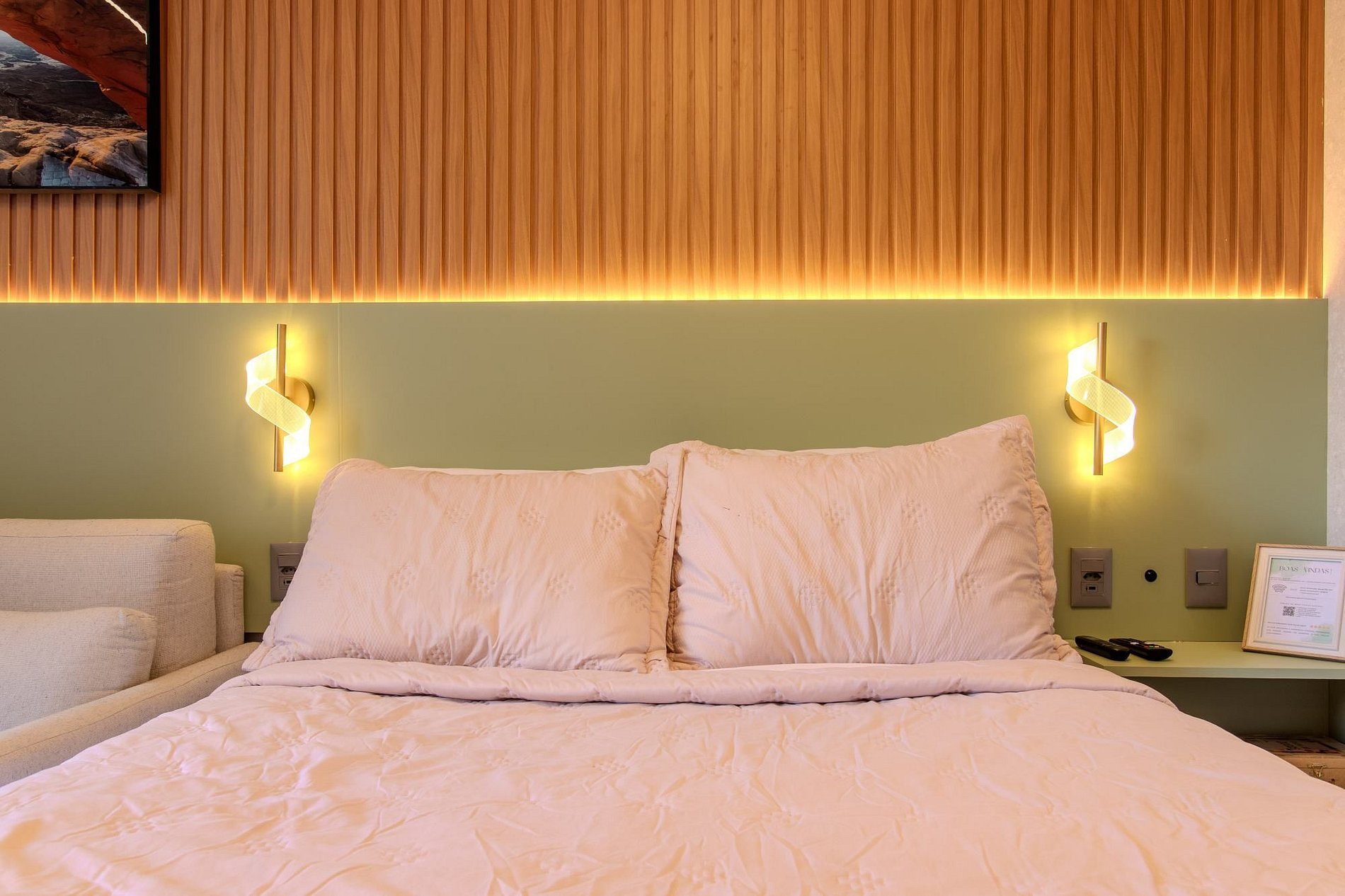 - Enxoval de cama incluso (travesseiros, fronhas, lençóis, manta)