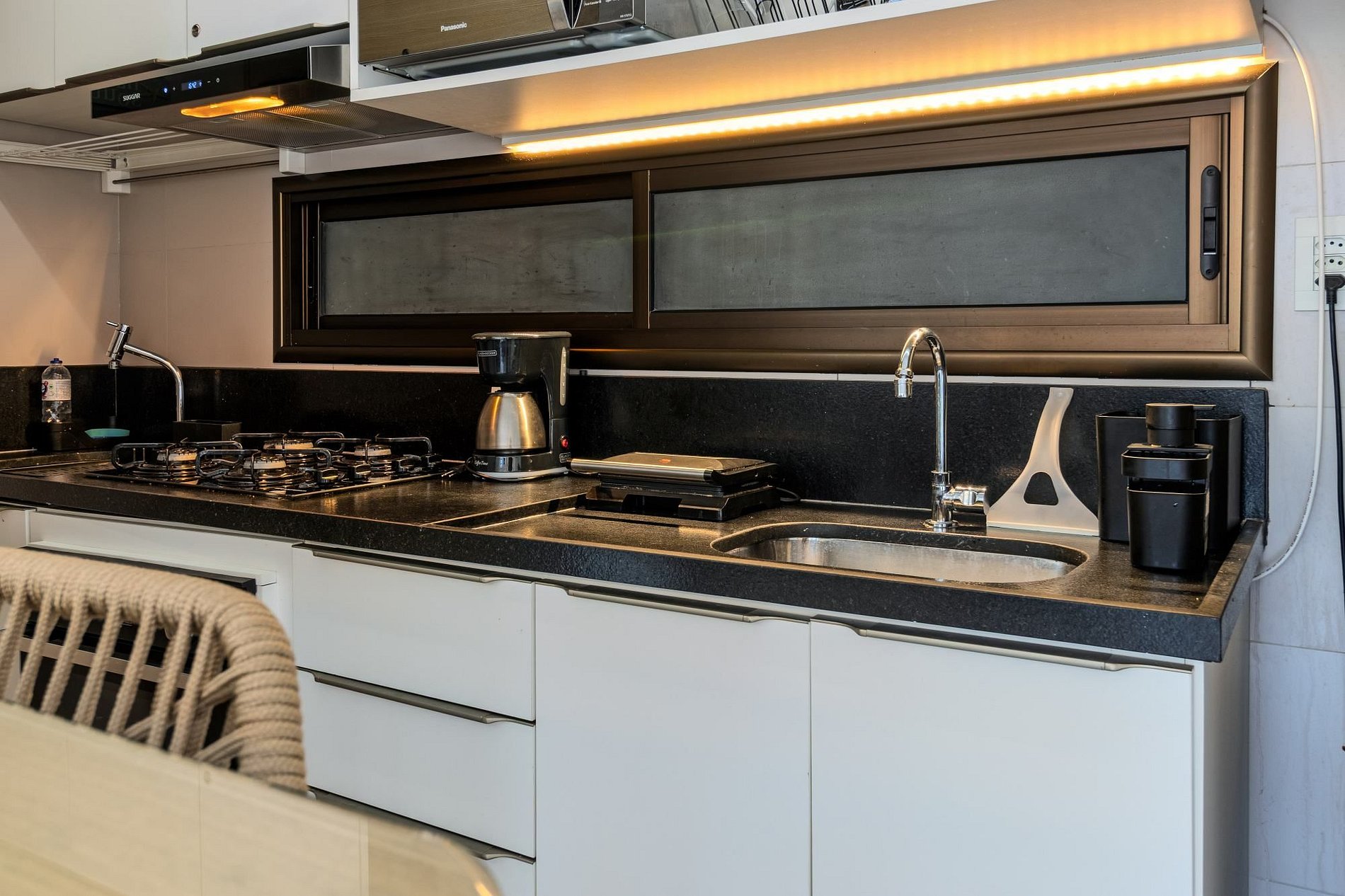- Itens como detergente, esponja, escorredor de pratos, pano de prato e perfex (No item comodidade não dispomos de óleo, tigelas, vasilhas, pimenta e Hashi)