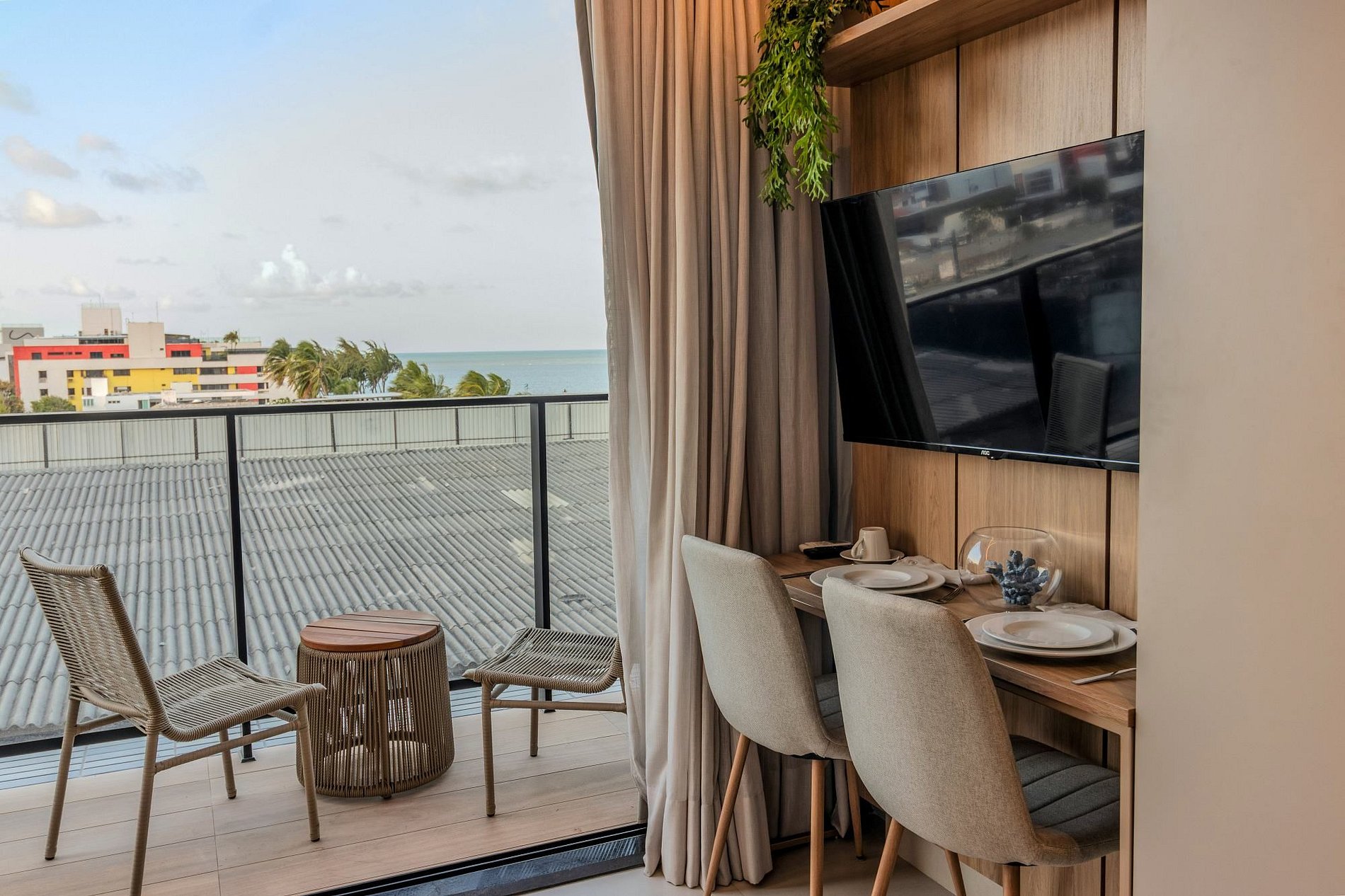 - Piscina e Área gourmet na cobertura com vista panorâmica para o mar;