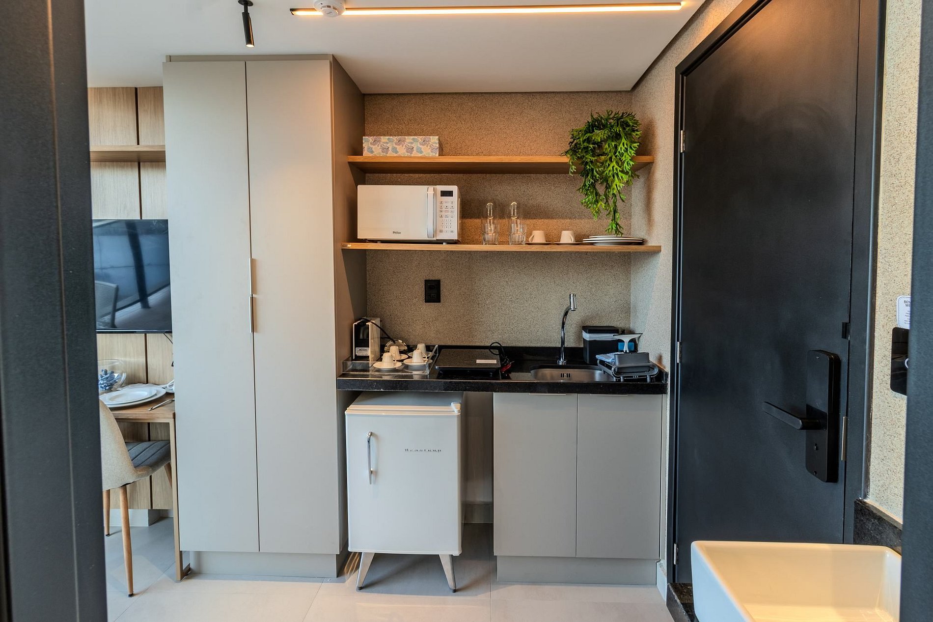 O espaço acomoda confortavelmente 2 hóspedes, sendo 100% equipado e funcional. Ideal para quem busca conforto, localização estratégica e uma ótima experiência!