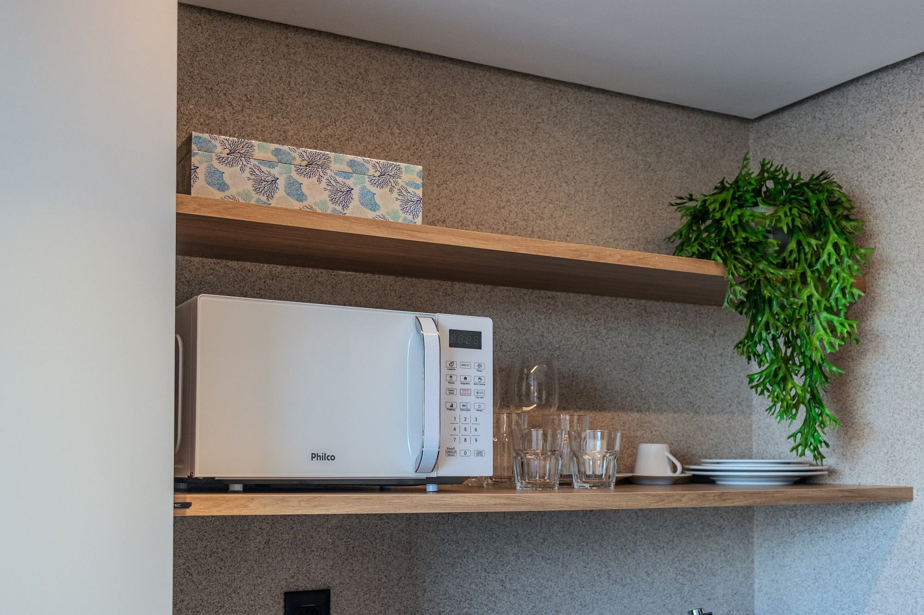- Itens como detergente, esponja, escorredor de pratos, pano de prato e perfex (No item comodidade não dispomos de óleo, tigelas, vasilhas, pimenta e Hashi)