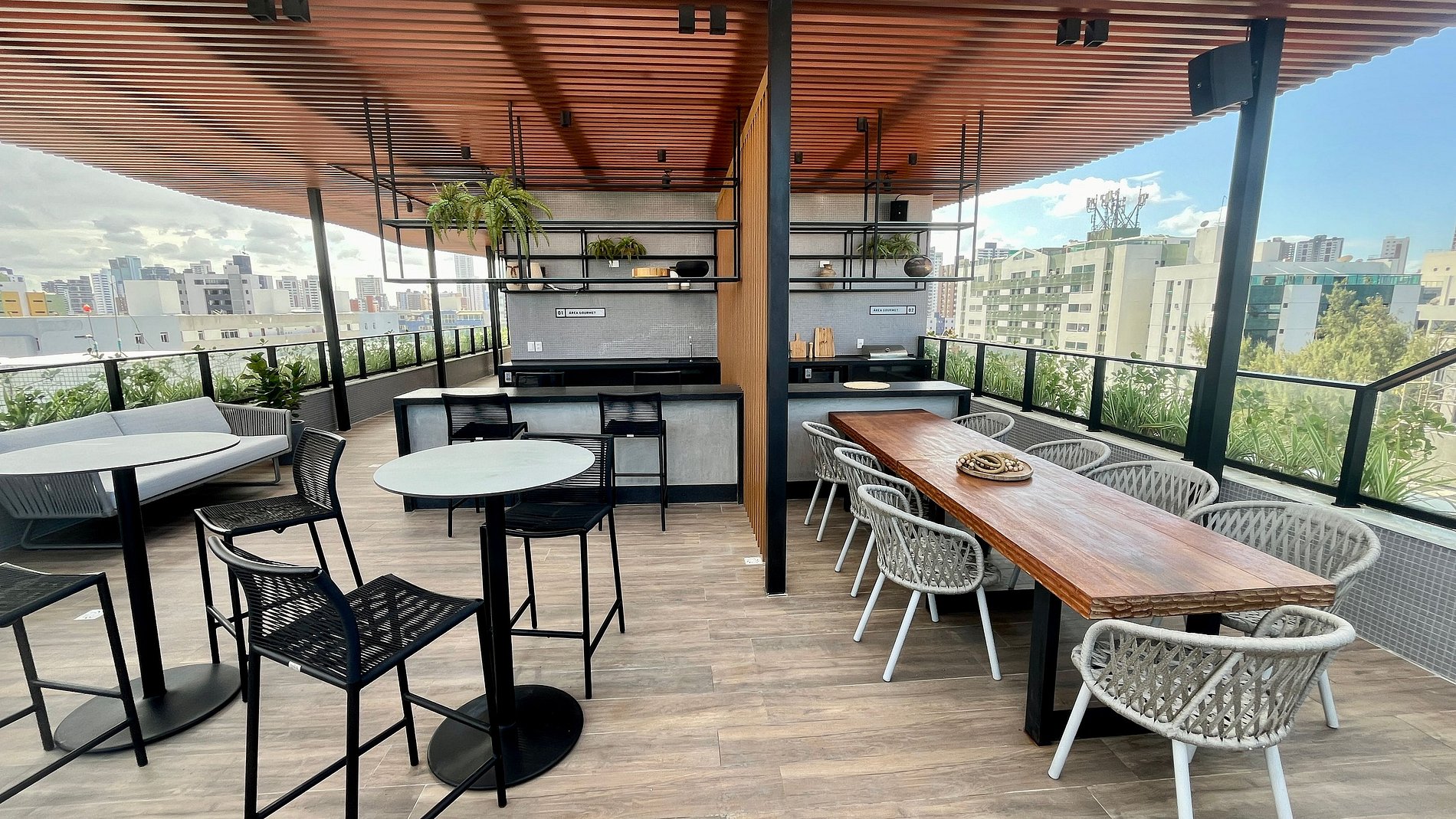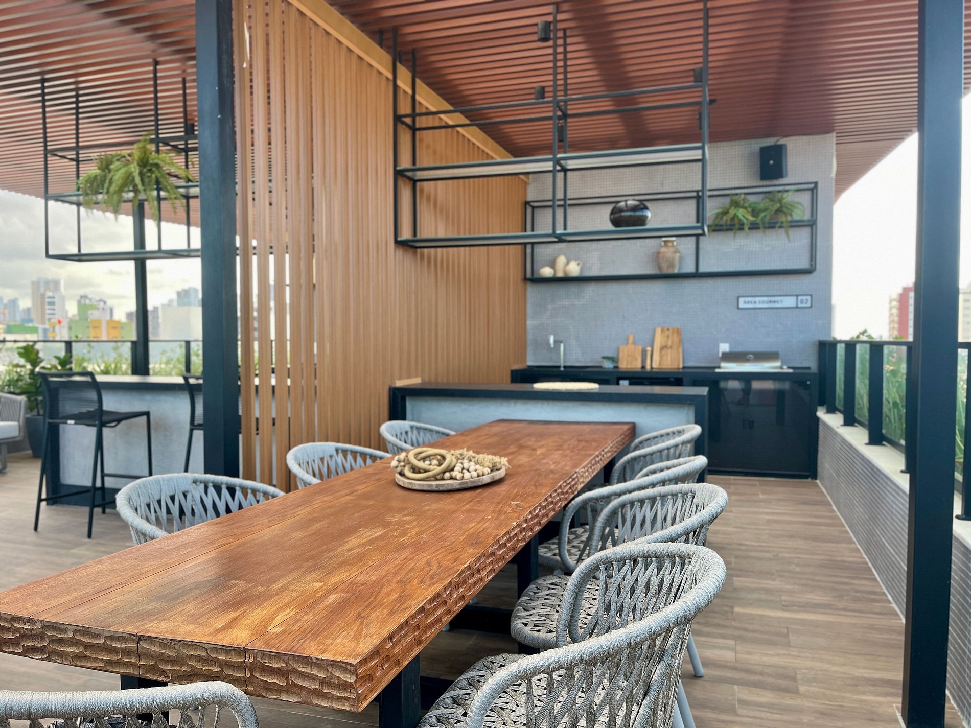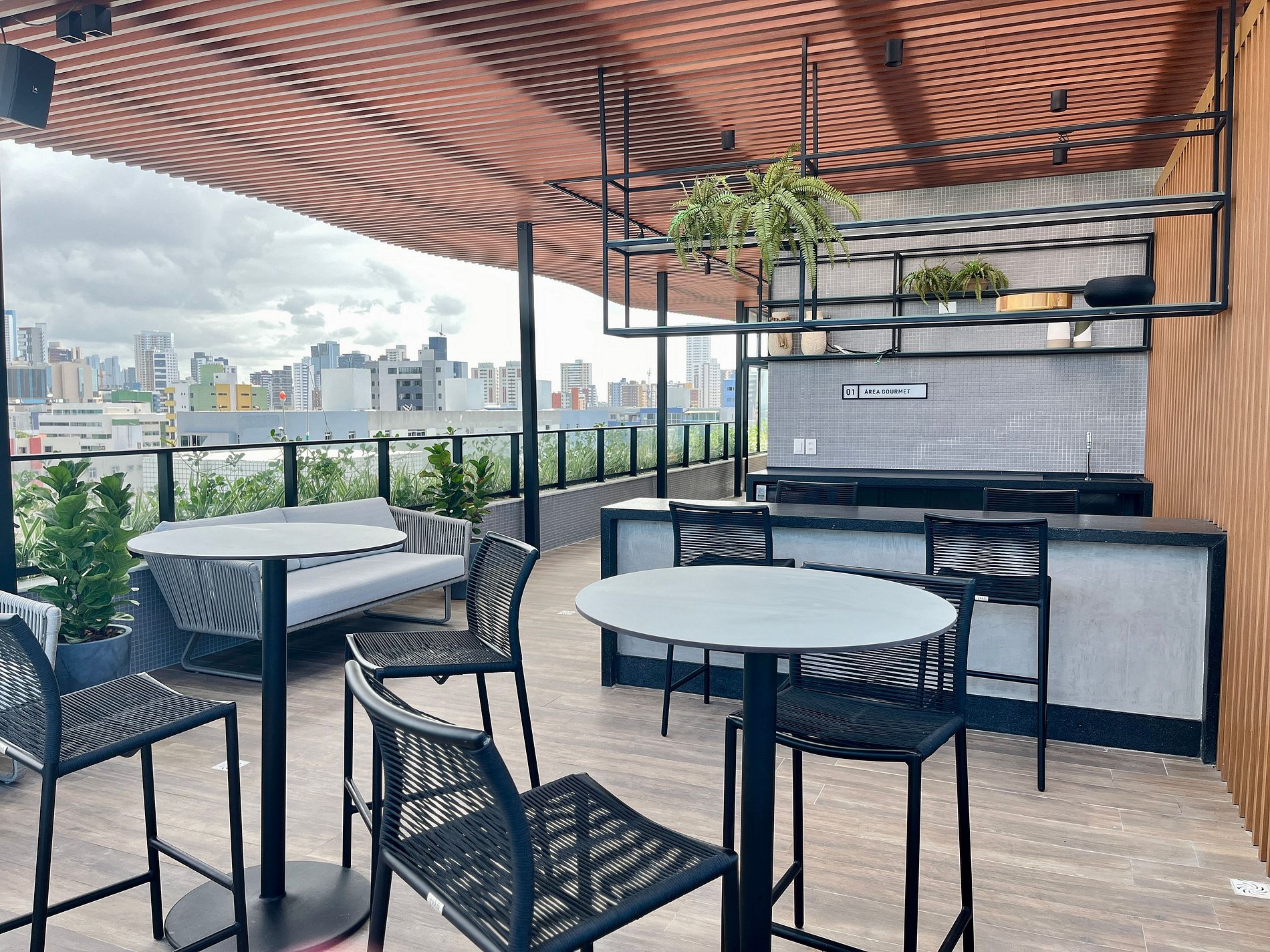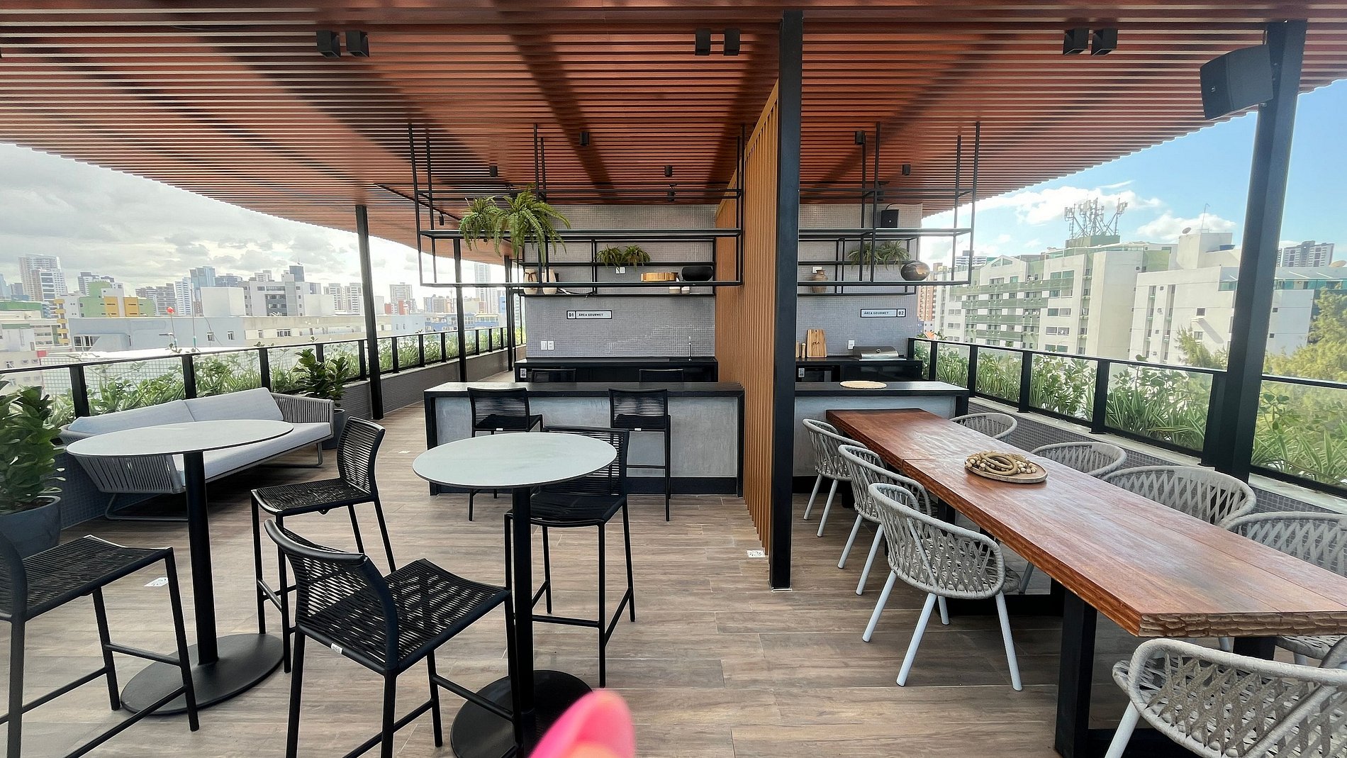 - Piscina e Área gourmet na cobertura com vista panorâmica para o mar;