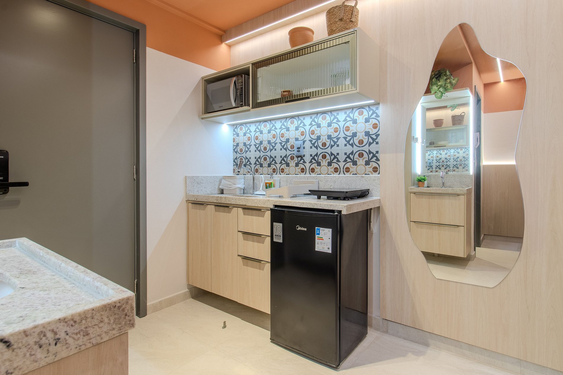 O espaço acomoda confortavelmente 2 hóspedes, sendo 100% equipado e funcional. Ideal para quem busca conforto, localização estratégica e uma ótima experiência!