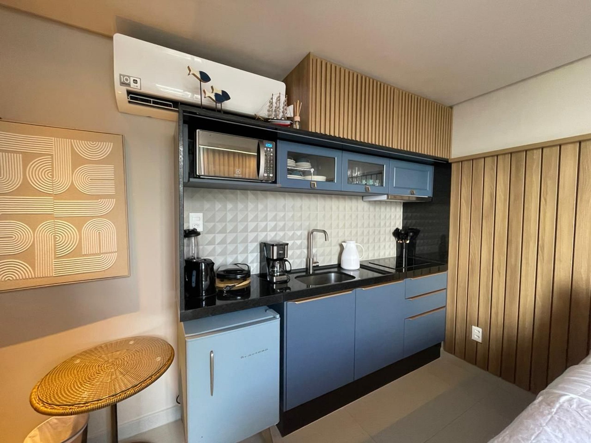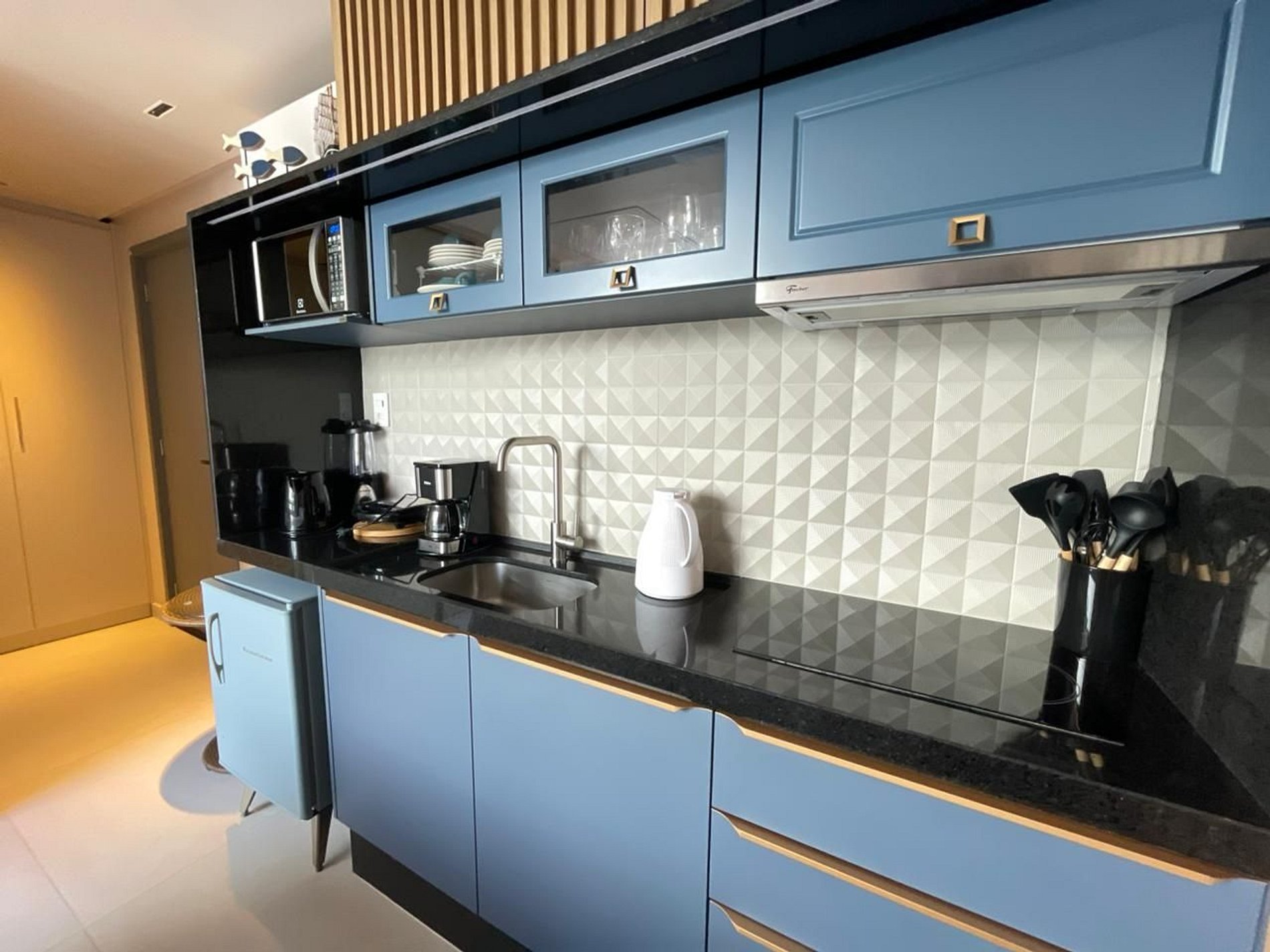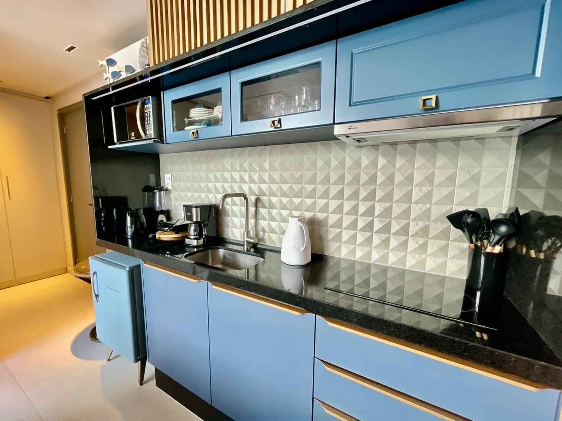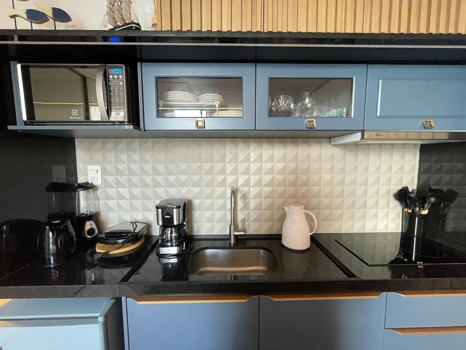 - Utensílios básicos (copos, xícaras, pratos, talheres)