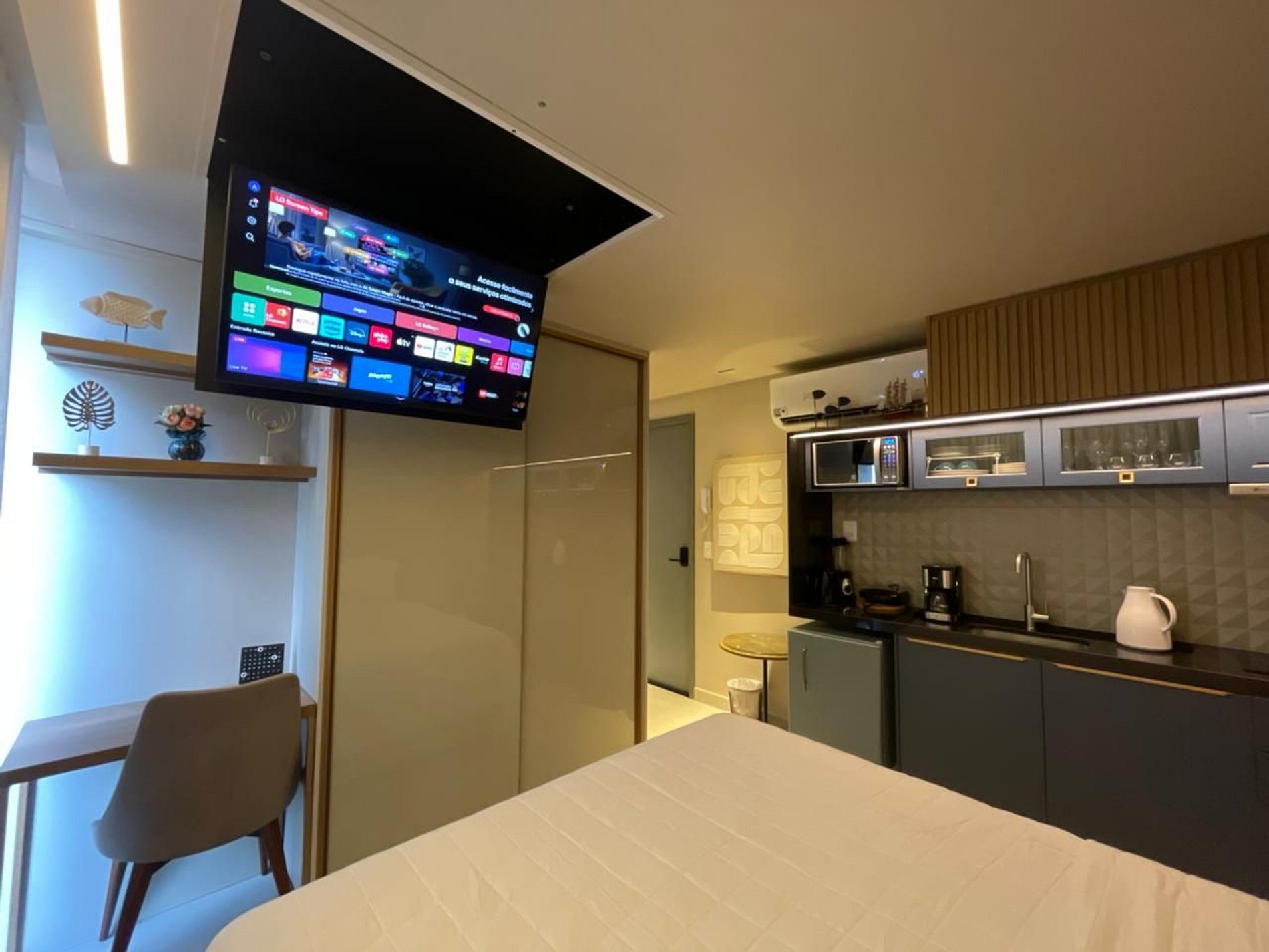 Você terá a disposição cozinha equipada, enxoval completo de cama e banho, Wi-Fi privativo, SmarTV, vaga de garagem e diversas outras comodidades essenciais ao seu bem estar!