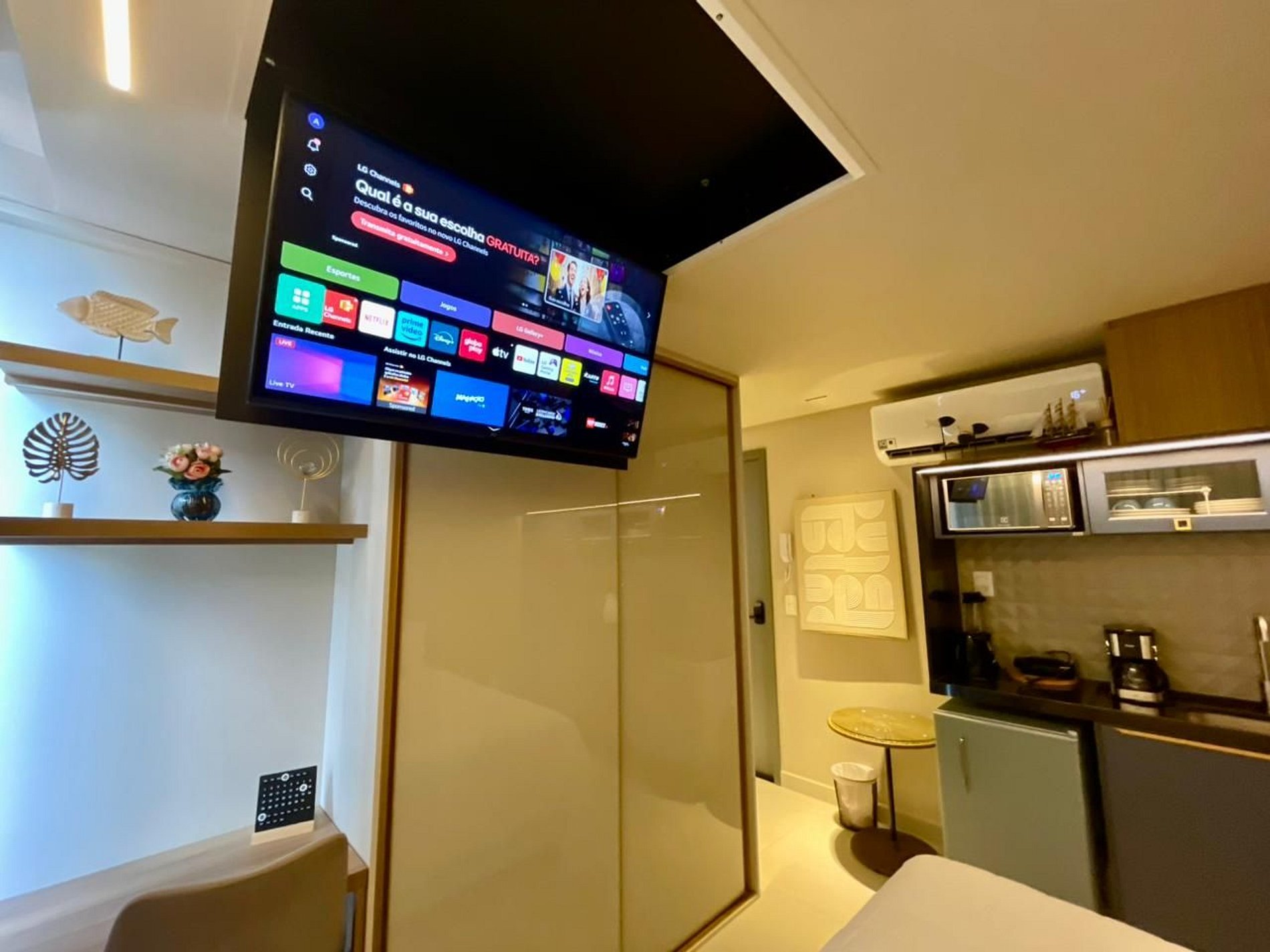 O espaço é um apê aconchegante com as seguintes comodidades: