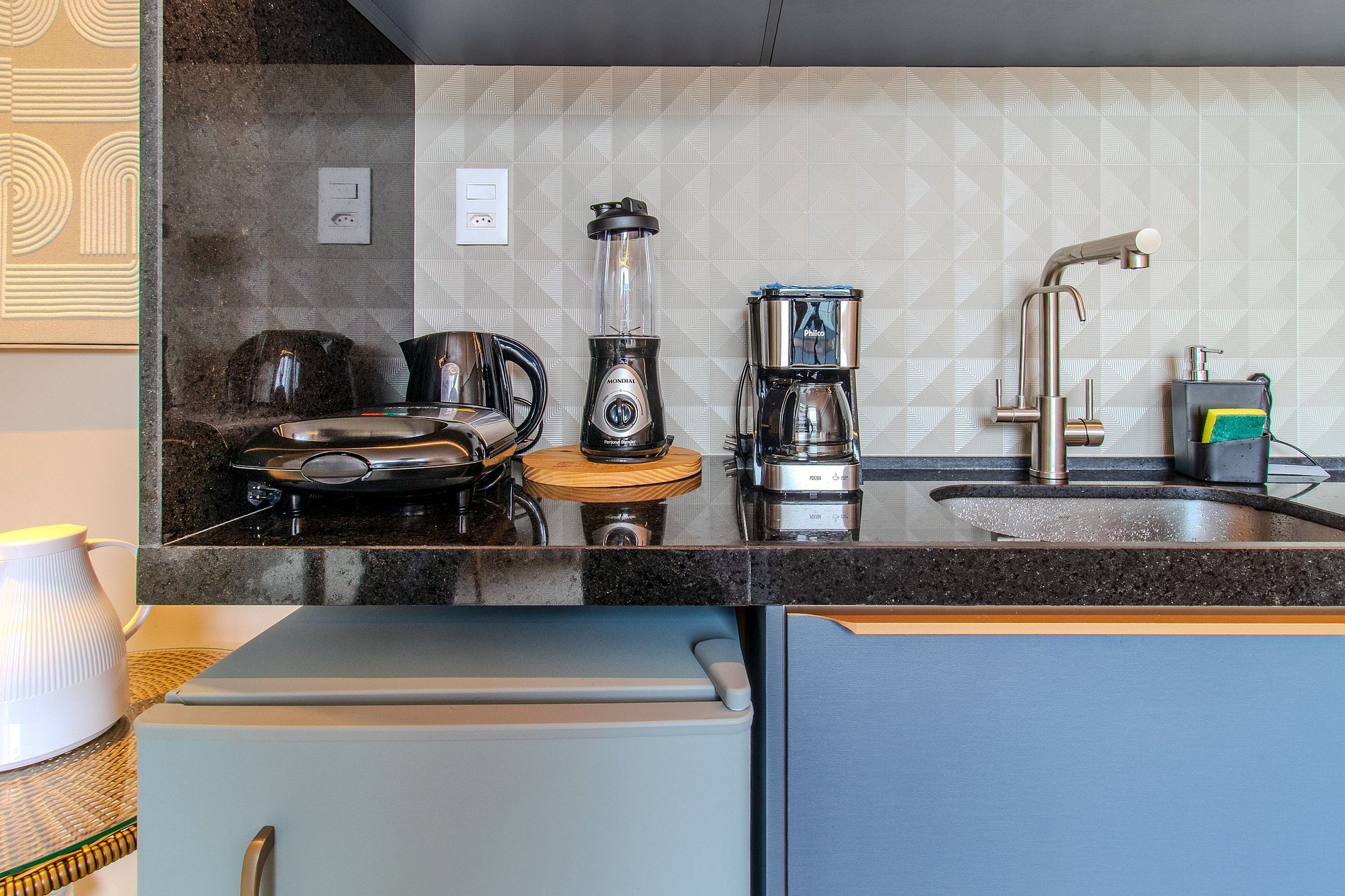 - Itens como detergente, esponja, escorredor de pratos, pano de prato e perfex (No item comodidade não dispomos de óleo, tigelas, vasilhas, pimenta e Hashi)