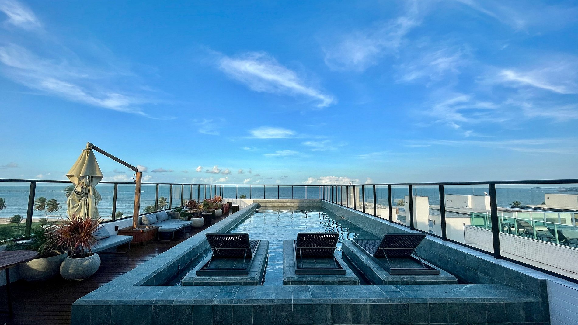 Desfrute da experiência de se hospedar a poucos passos do mar e com uma vista espetacular da orla de João Pessoa direto da cobertura do Get by Side.