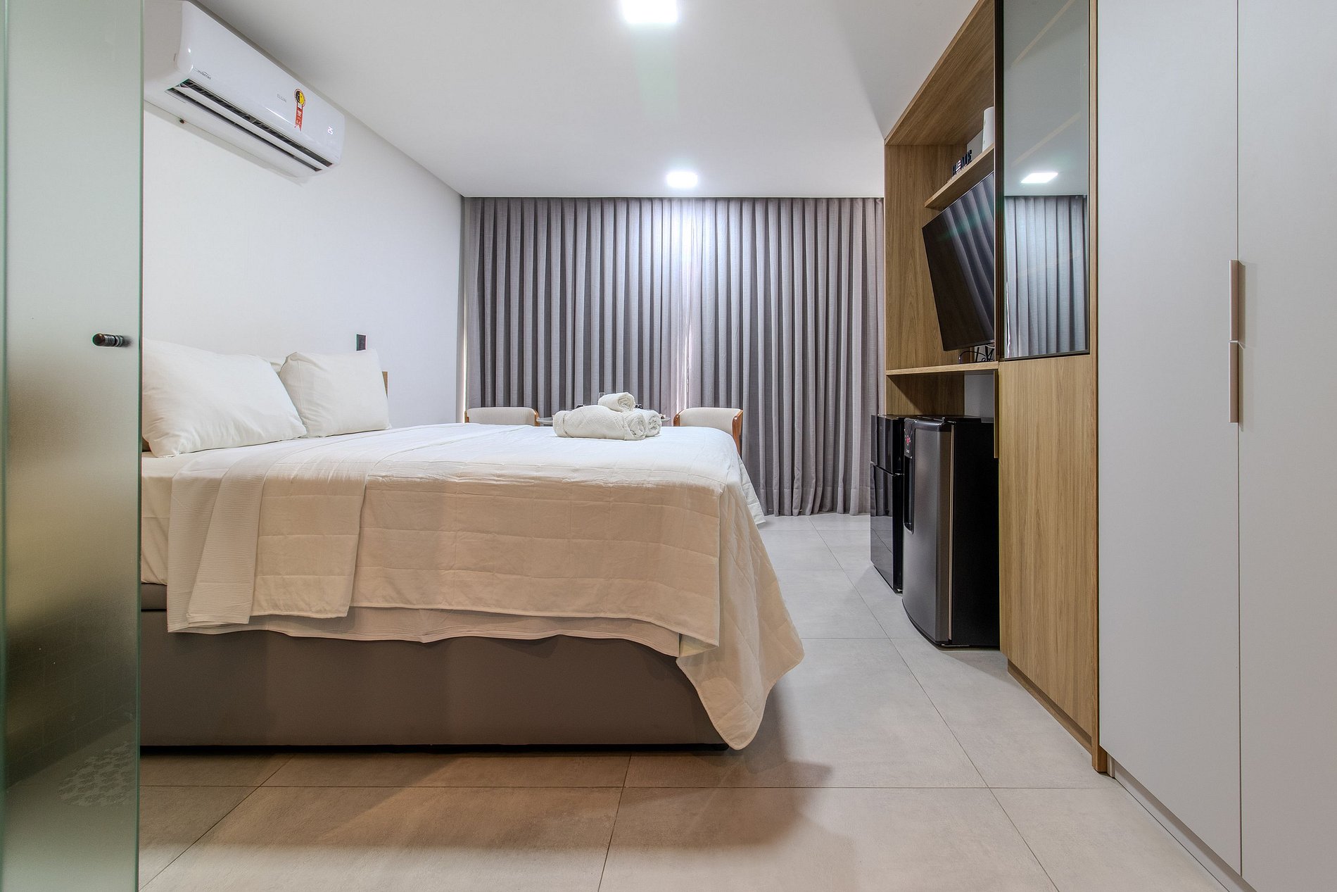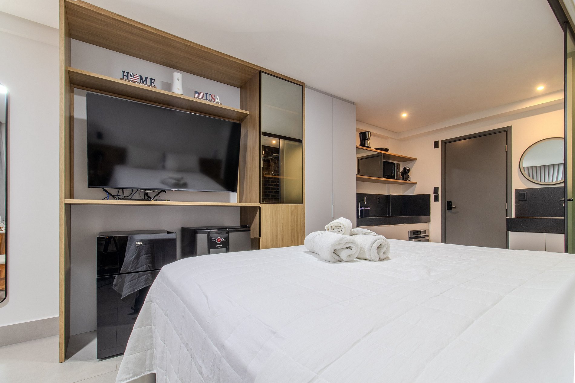 Você terá a disposição cozinha equipada, enxoval completo de cama e banho, Wi-Fi privativo, SmarTV, vaga de garagem interna rotativa e diversas outras comodidades essenciais ao seu bem estar!