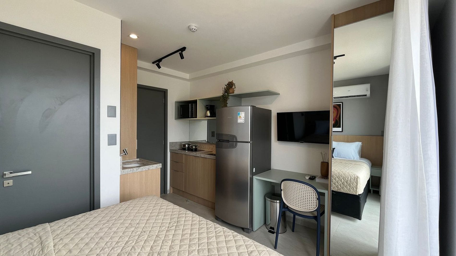 O espaço acomoda confortavelmente 2 hóspedes, sendo 100% equipado e funcional. Ideal para quem busca conforto, localização estratégica e uma ótima experiência!