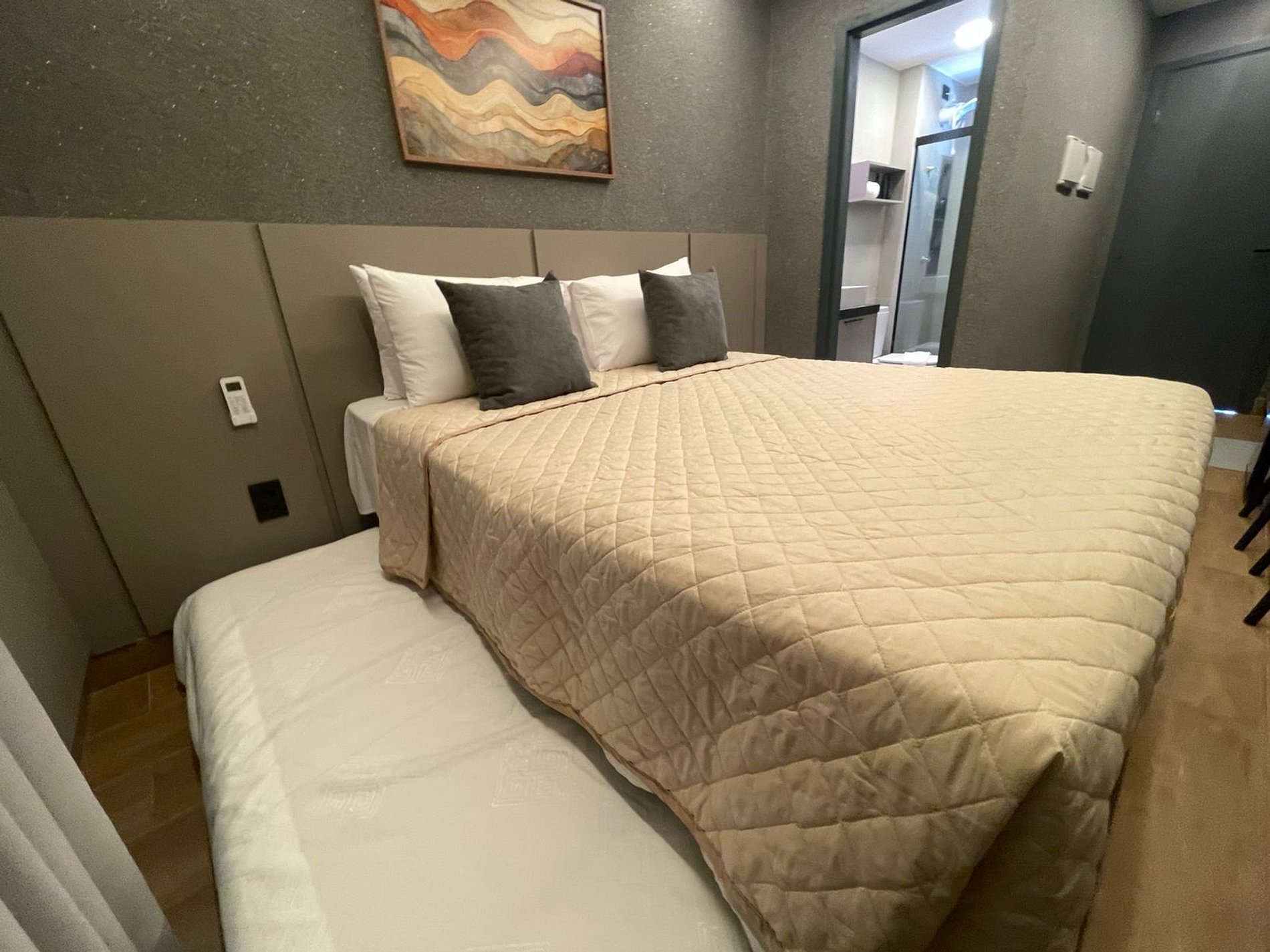 - Cama casal com duas camas solteiro acopladas