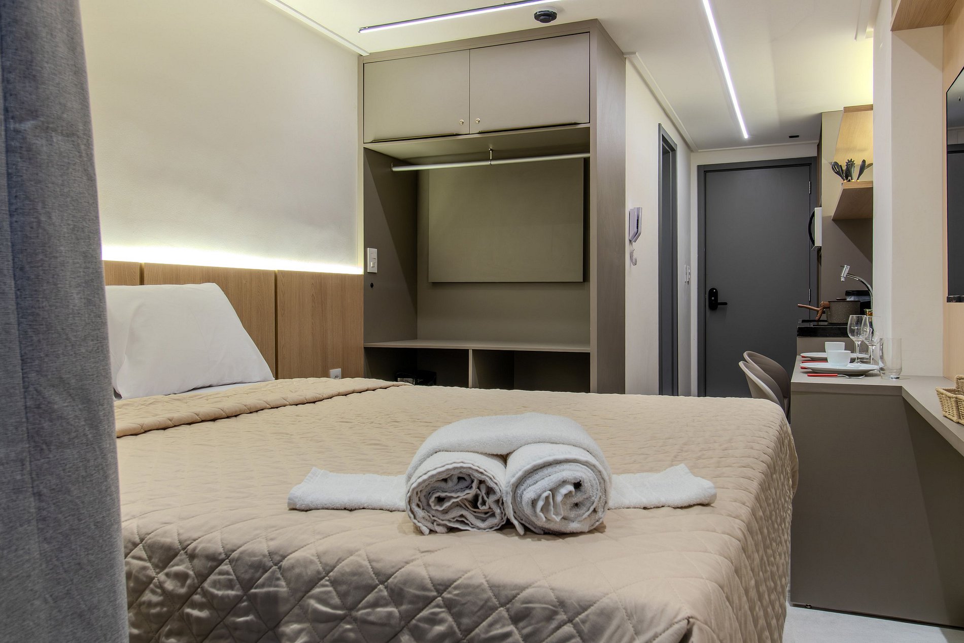 O espaço acomoda confortavelmente 2 hóspedes, sendo 100% equipado e funcional. Ideal para quem busca conforto e uma ótima experiência!