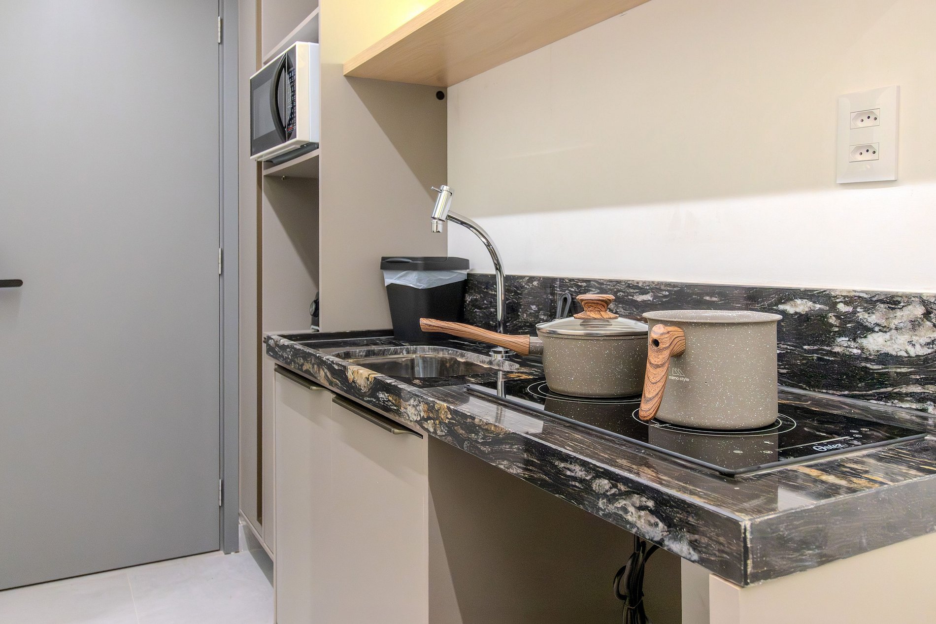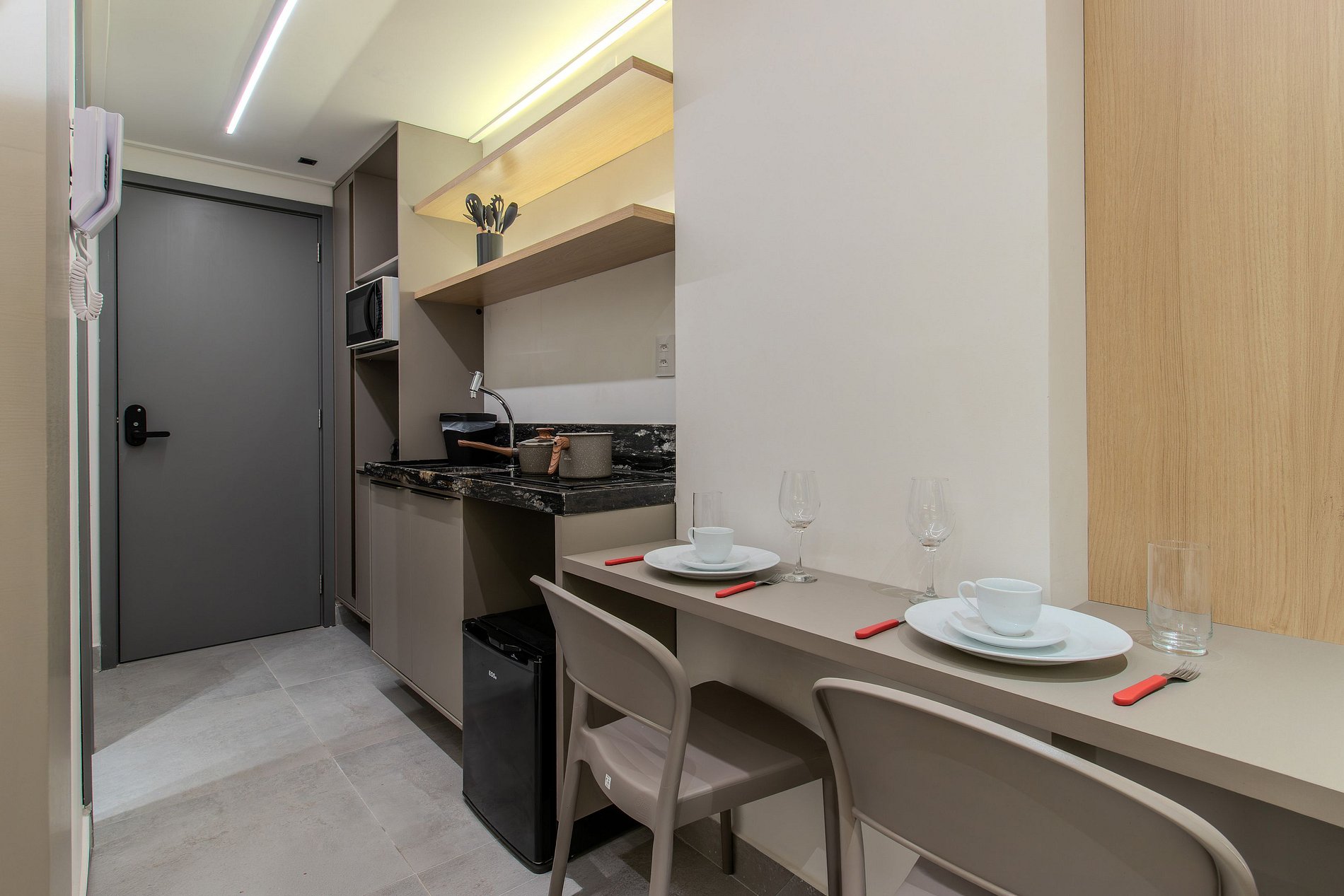 - Utensílios básicos (copos, xícaras, pratos, talheres, jogo de panelas básico e utensílios de cozinha) (No item comodidade não dispomos de óleo, tigelas, vasilhas, pimenta e Hashi)