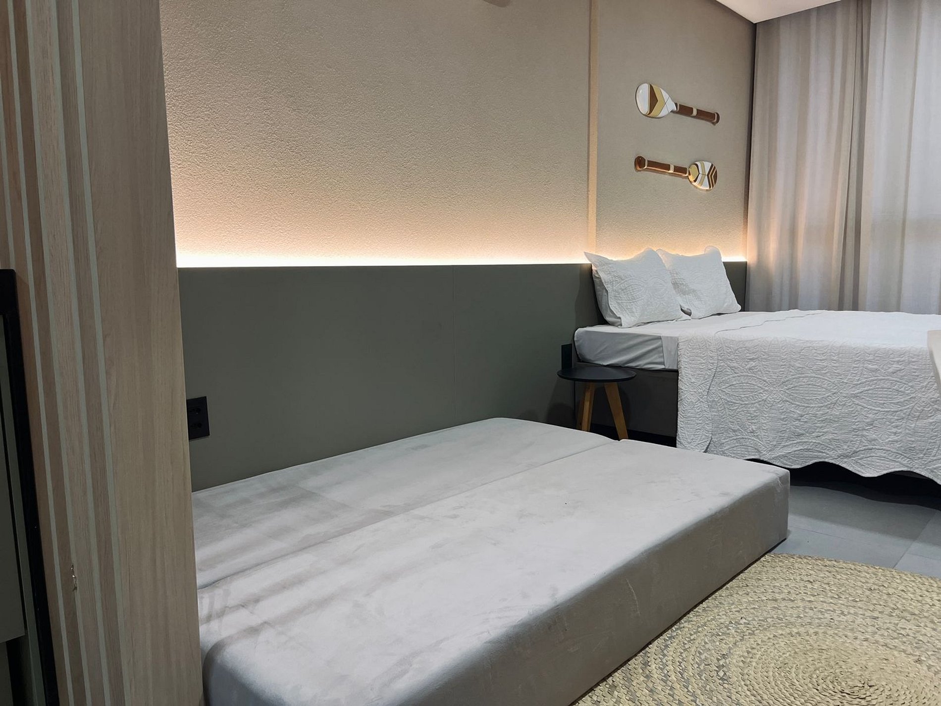 - Enxoval de cama incluso (travesseiros, fronhas, lençóis, manta)