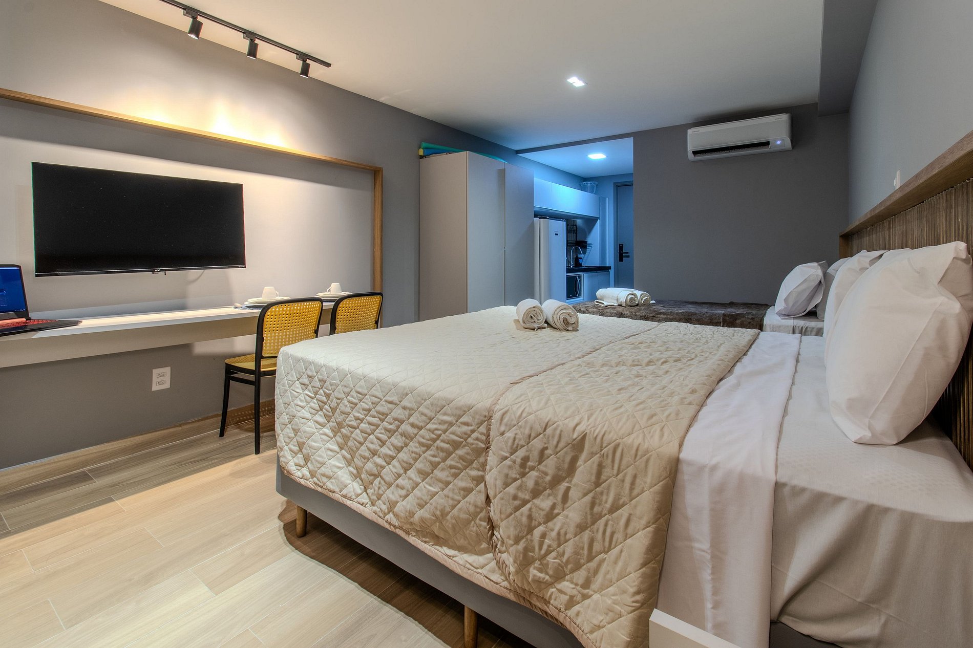O espaço acomoda confortavelmente 4 hóspedes, sendo 100% equipado e funcional. Ideal para quem busca conforto e uma ótima experiência!