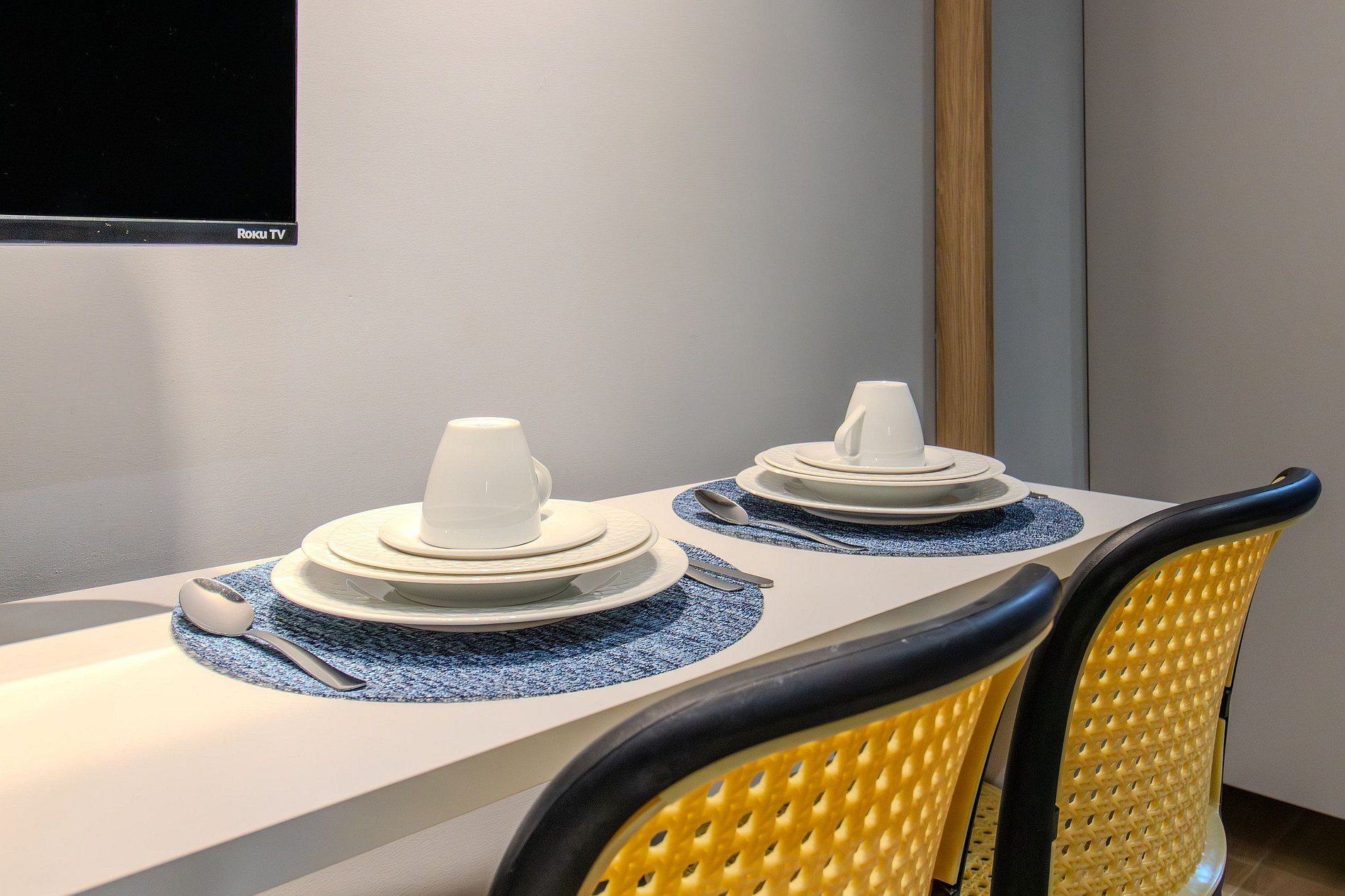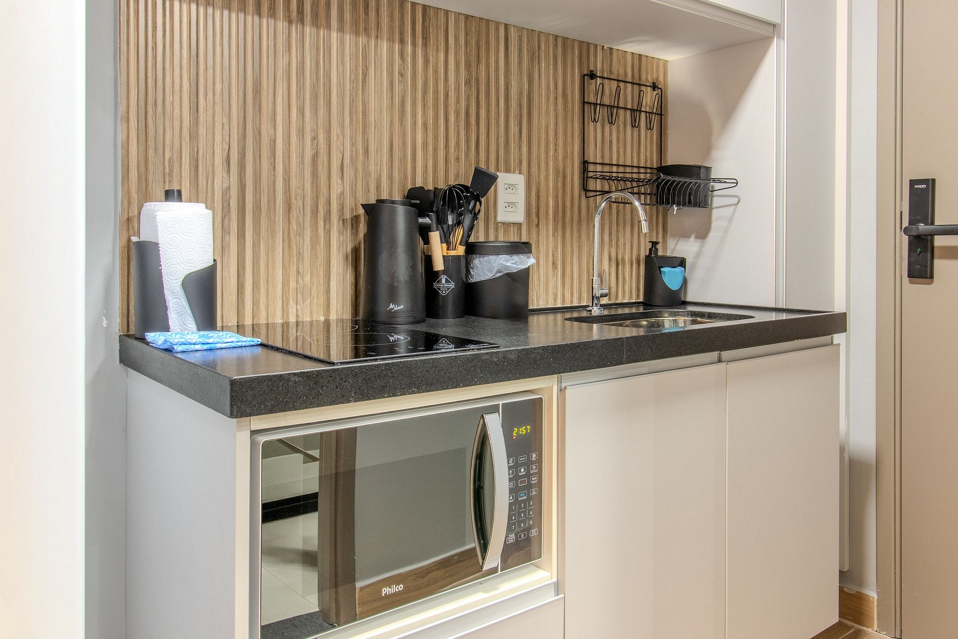 - Utensílios básicos (copos, xícaras, pratos, talheres, jogo de panelas básico e utensílios de cozinha) (No item comodidade não dispomos de óleo, tigelas, vasilhas, pimenta e Hashi)