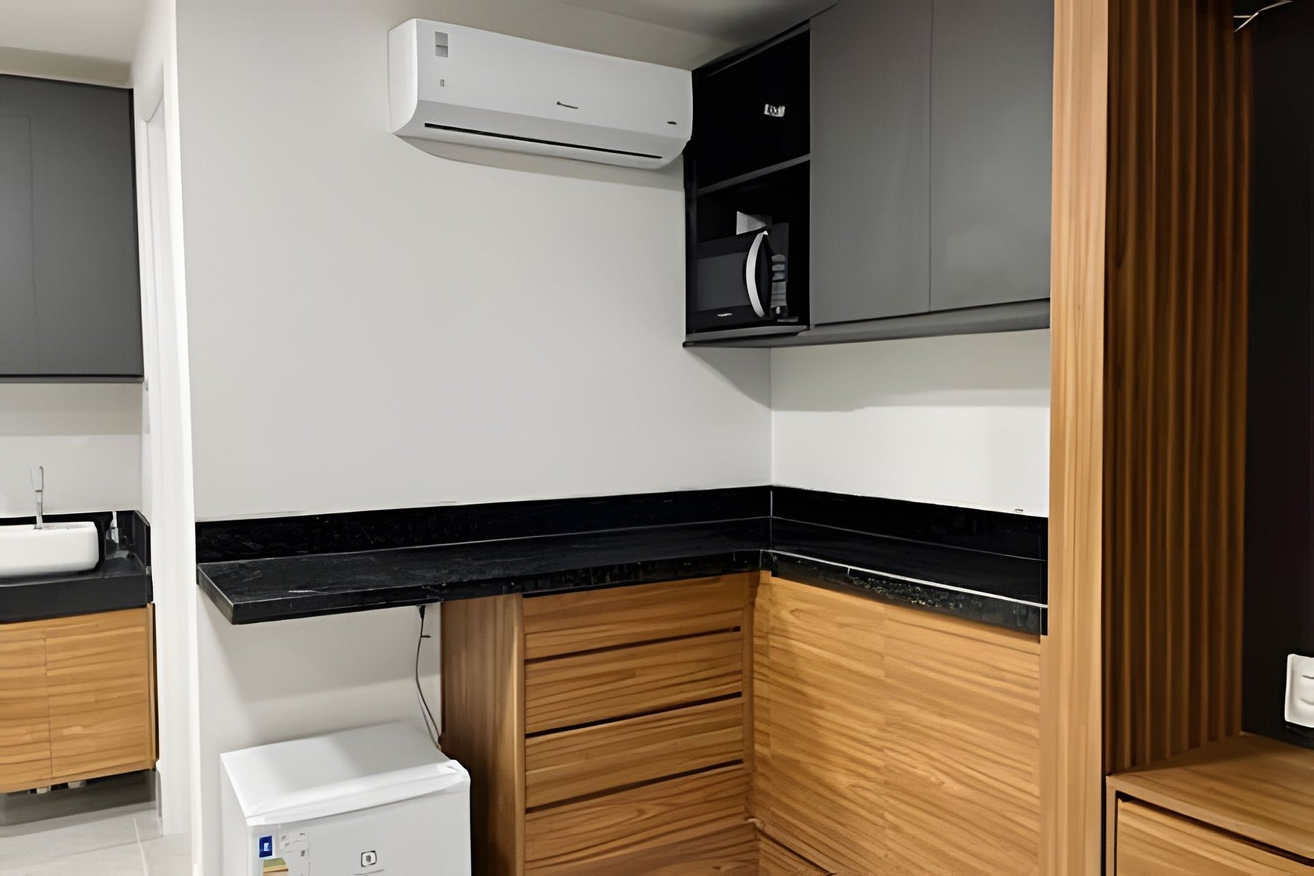 - Eletrodomésticos como Frigobar, Micro-ondas, Cafeteira e Sanduicheira;