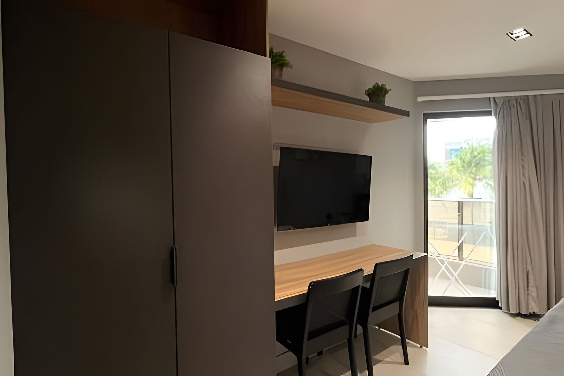 - Quarto com cama Queen, SmarTV, TV a Cabo, Guarda roupa e Ar condicionado;
