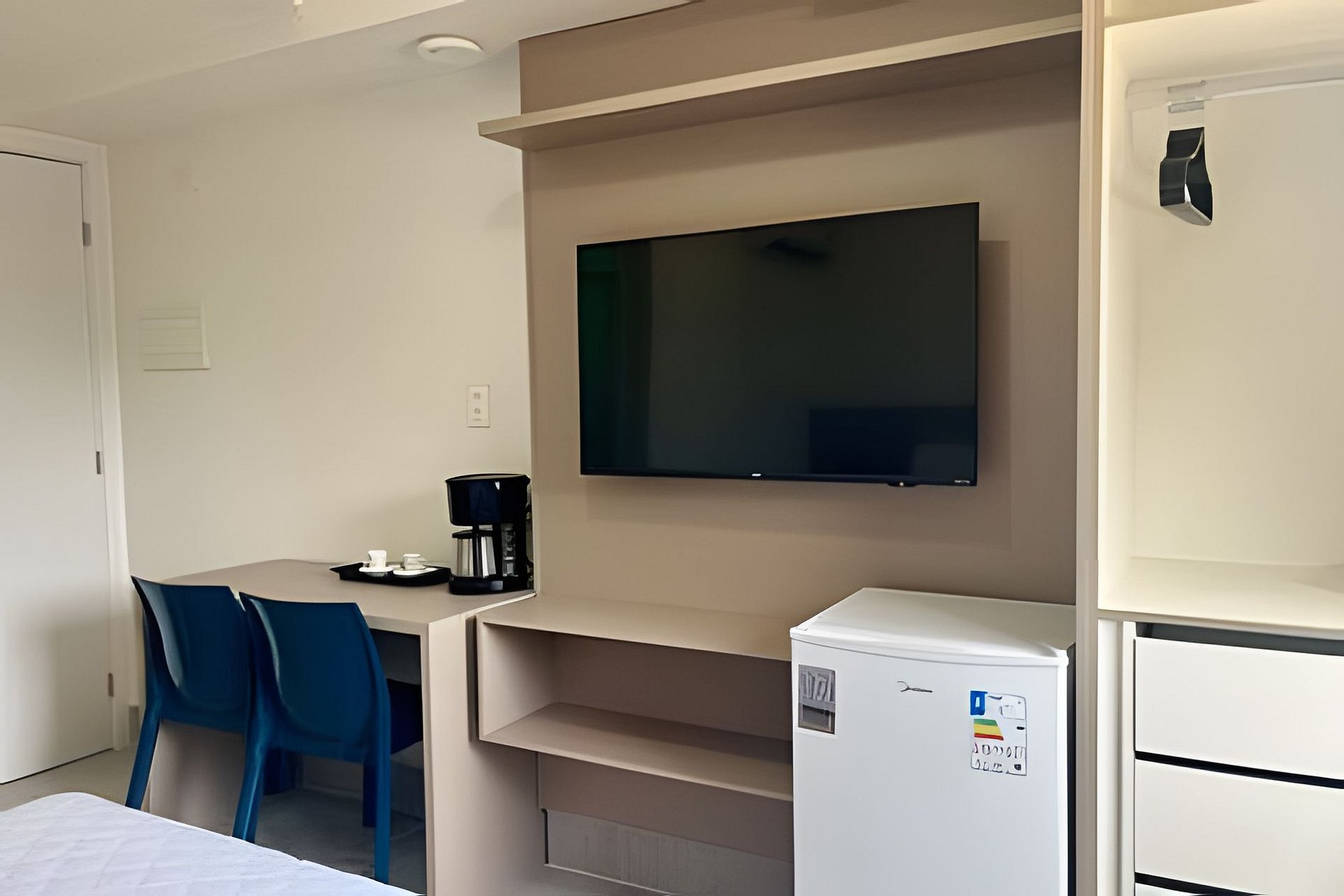 - Eletrodomésticos como Frigobar e Cafeteira;