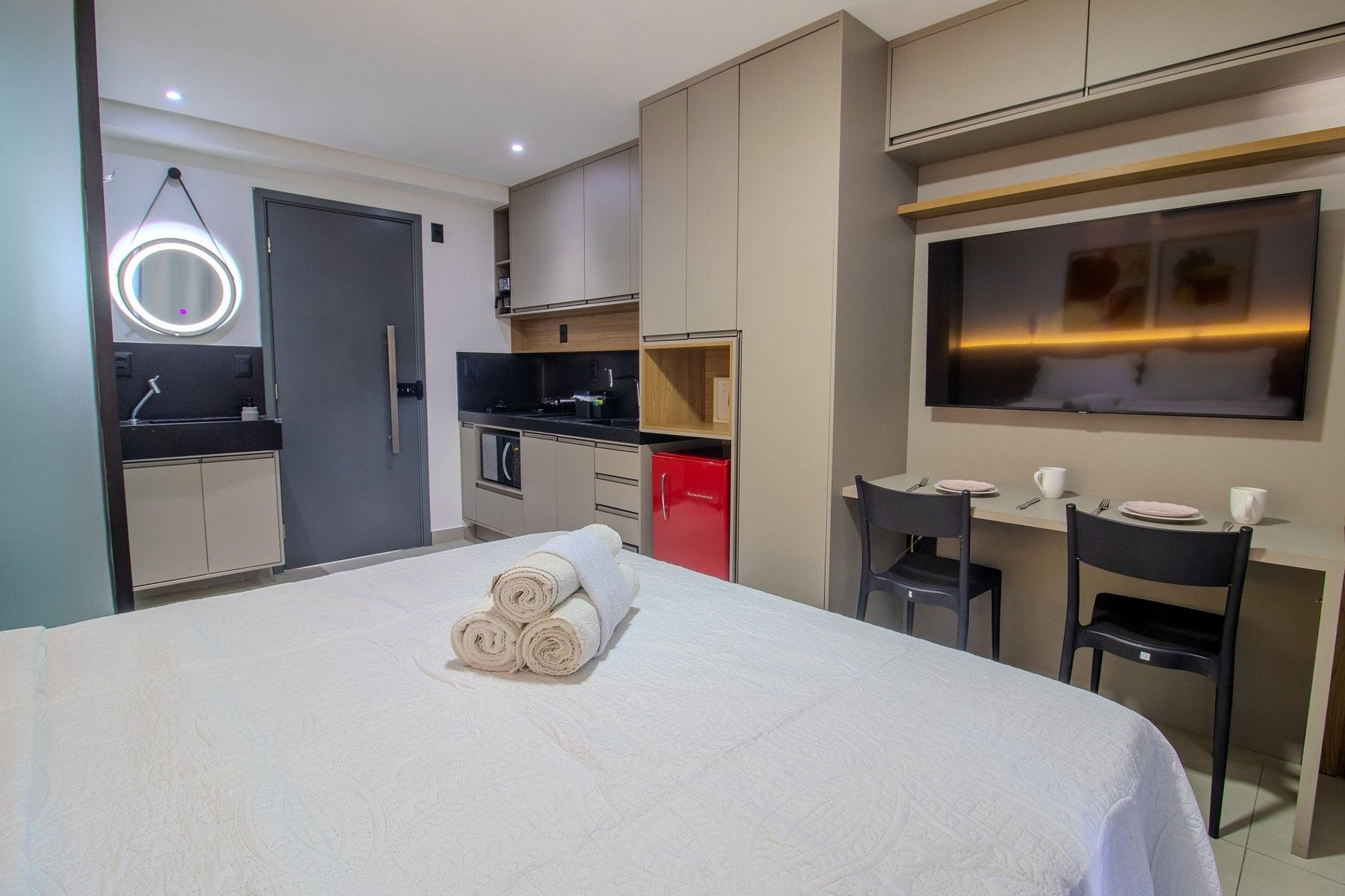 Você terá a disposição cozinha equipada, enxoval completo de cama e banho, Wi-Fi privativo, SmarTV, vaga de garagem interna rotativa e diversas outras comodidades essenciais ao seu bem estar!