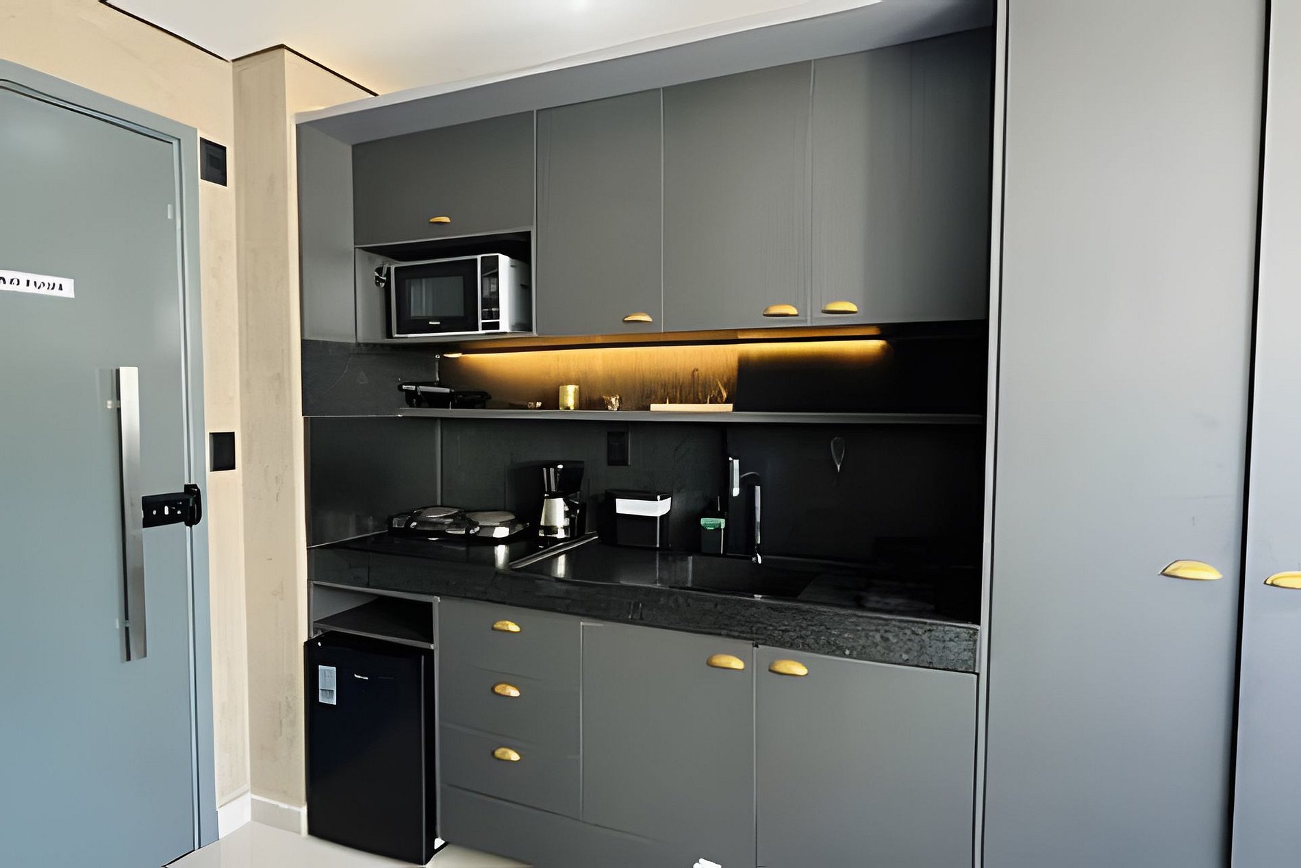 - Itens como detergente, esponja, escorredor de pratos, pano de prato e perfex (No item comodidade não dispomos de óleo, tigelas, vasilhas, pimenta e Hashi)