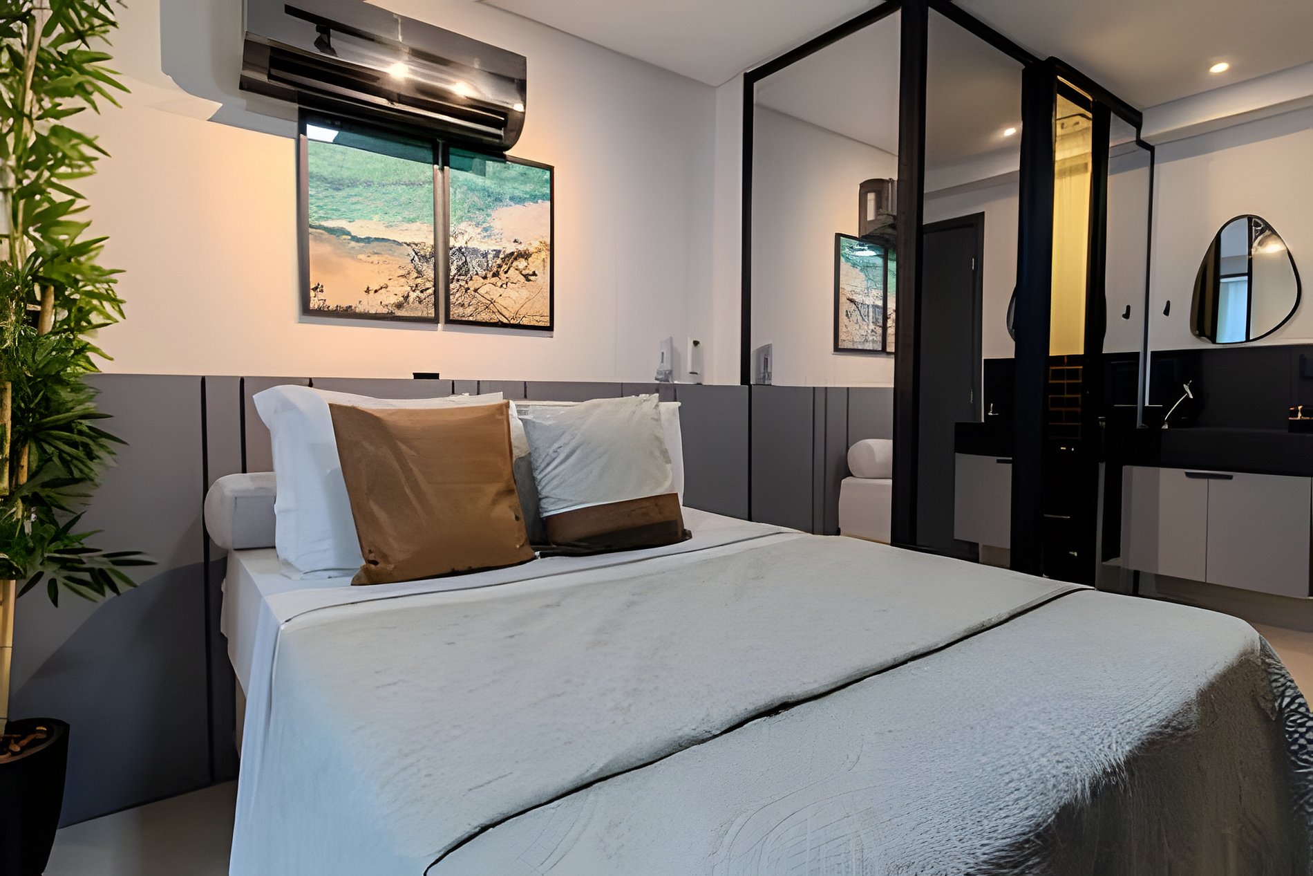 Você terá a disposição cozinha equipada, enxoval completo de cama e banho, Wi-Fi privativo, SmarTV, vaga de garagem interna e diversas outras comodidades essenciais ao seu bem estar!