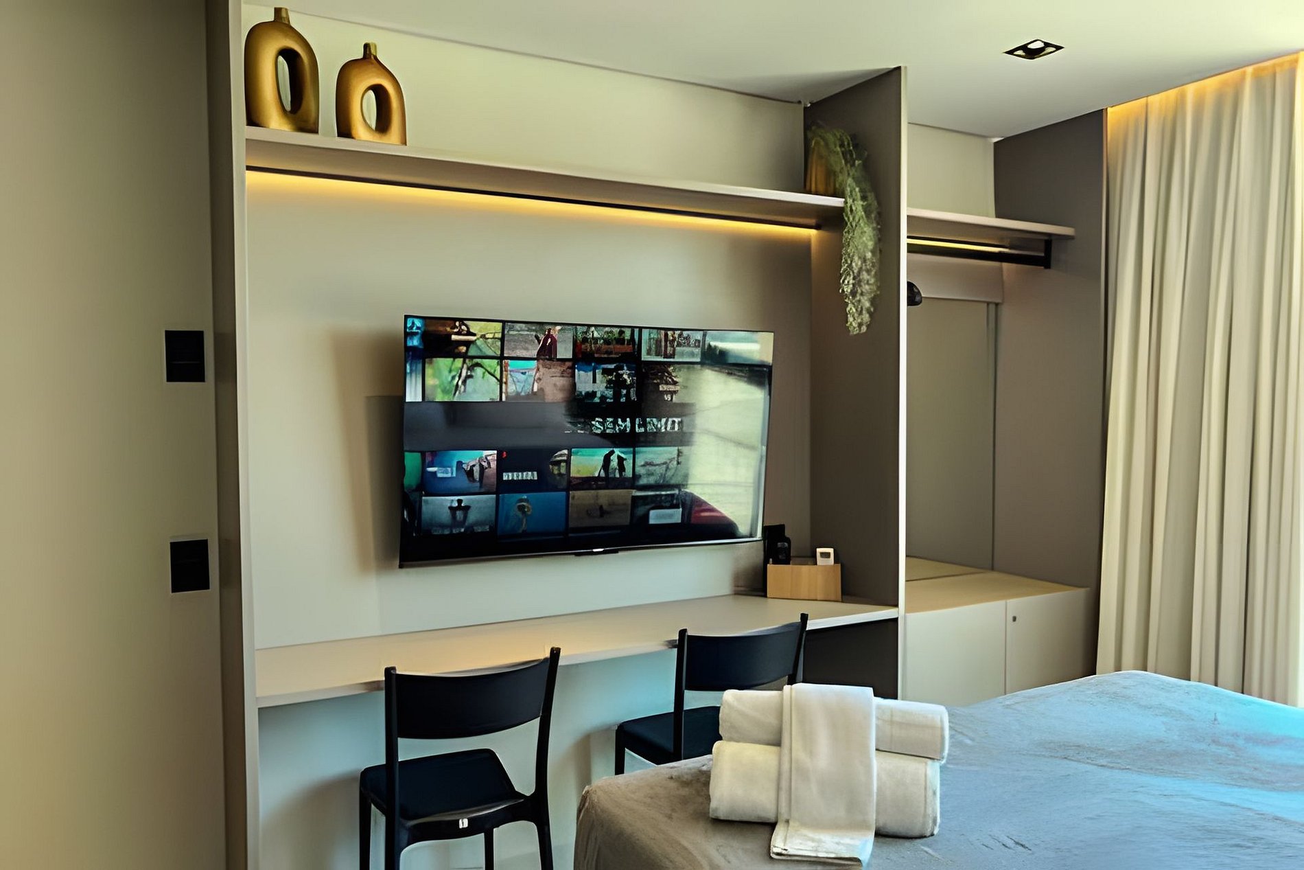 Você terá a disposição cozinha equipada, enxoval completo de cama e banho, SmarTV, vaga de garagem e diversas outras comodidades essenciais ao seu bem estar!