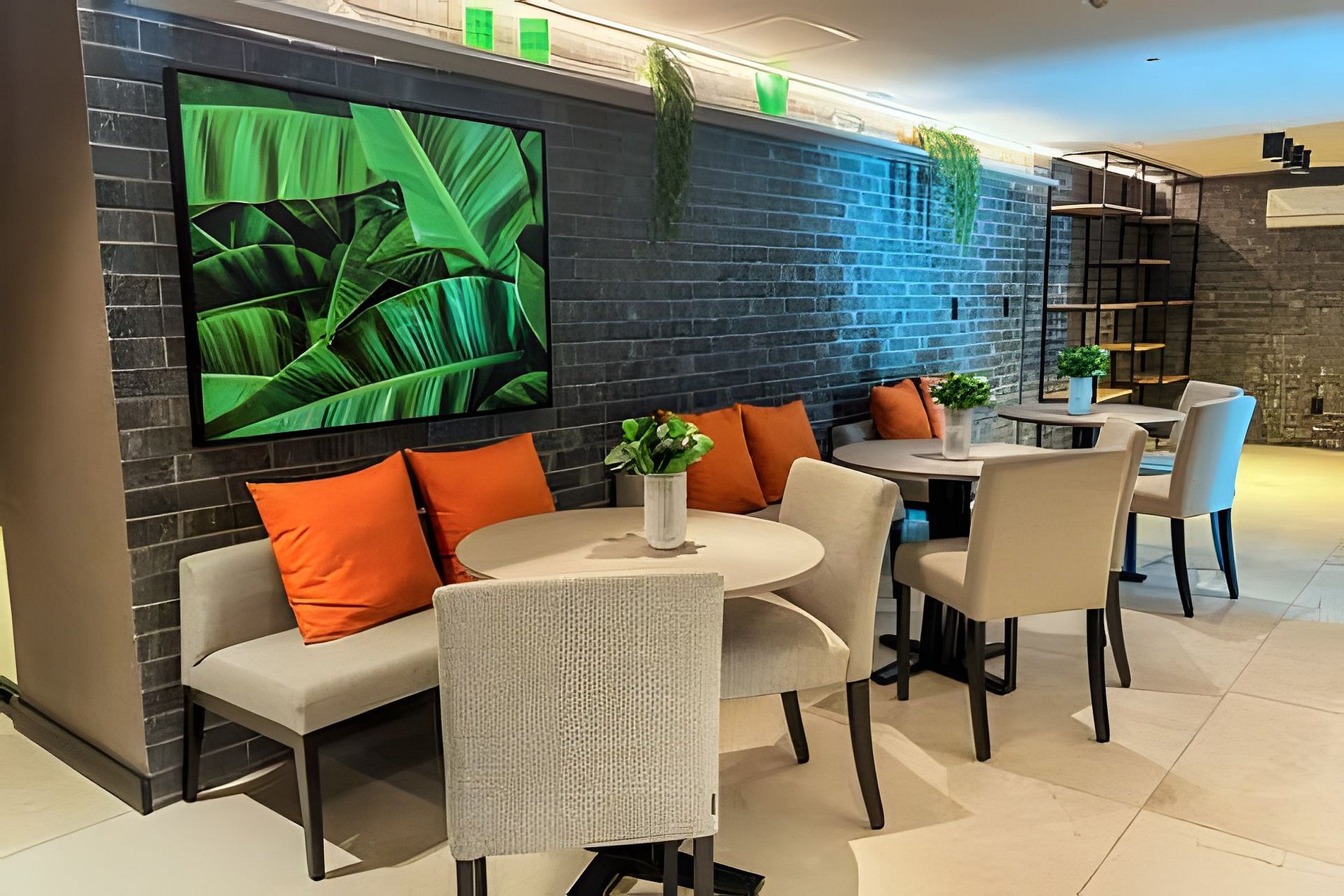 - Quarto com cama Queen e 1 cama de solteiro acoplada, SmarTV, Ar condicionado, Espelho, Espaço para guardar roupas e mesa com 2 lugares;