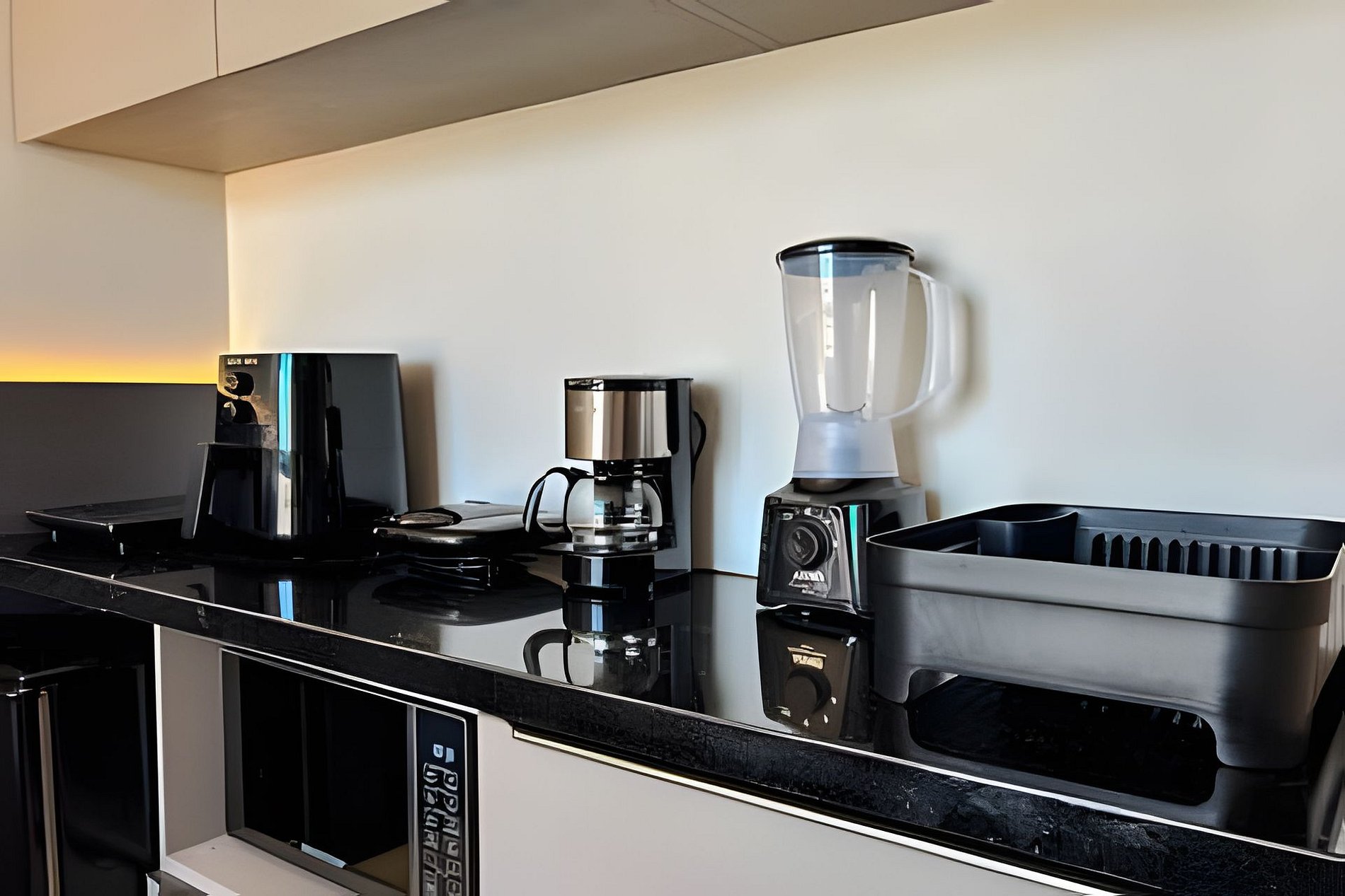 - Cozinha com Frigobar, Micro-ondas, Fogão (1 boca), Air Fryer, Cafeteira, Sanduicheira e Liquidificador. Além de utensílios domésticos como copos, xícaras, taças, pratos, talheres, jogo de panelas básico e utensílios de cozinha. (No item comodidade não dispomos de óleo, tigelas, vasilhas, pimenta e Hashi). OBS: NÃO POSSUI PIA.