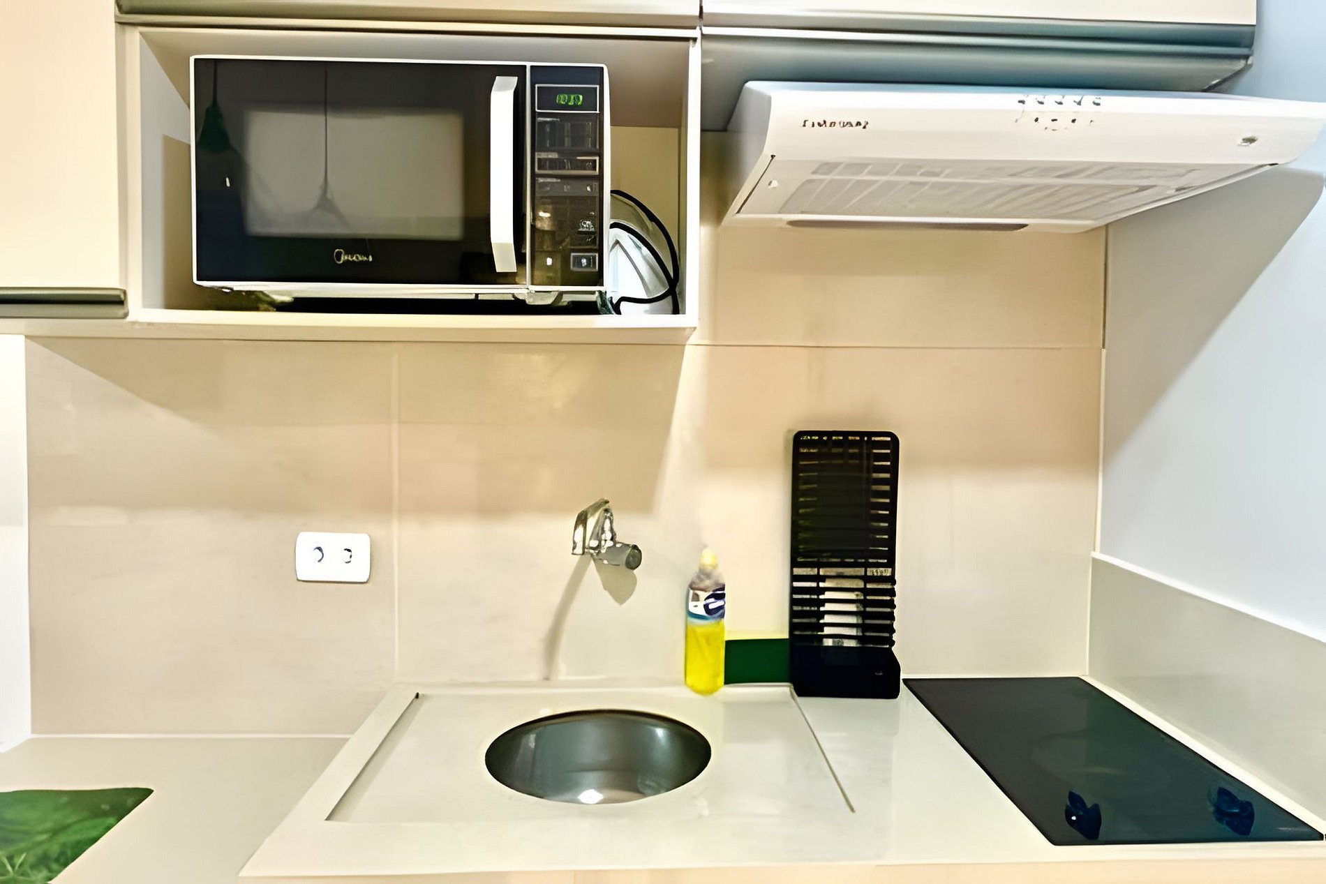 - Cozinha completa com Microondas, Cooktop, Frigobar, Cafeteira, Liquidificador e Sanduicheira. Além de utensílios domésticos como pratos, copos, xícaras, talheres, jogo de panelas básico e itens de cozinha como açúcar, café e sal; (No item comodidade não dispomos de óleo, tigelas, vasilhas, pimenta e Hashi).