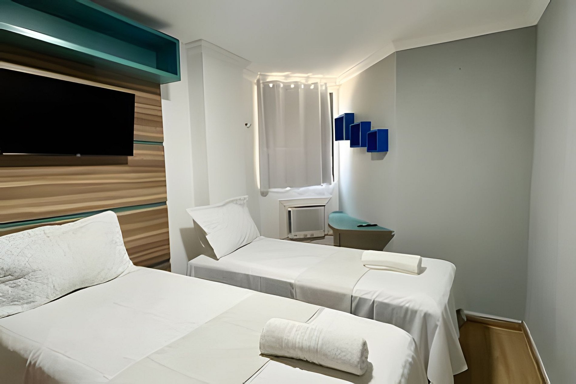 - Quarto com duas camas de solteiro, Guarda-roupa e Ar condicionado;
