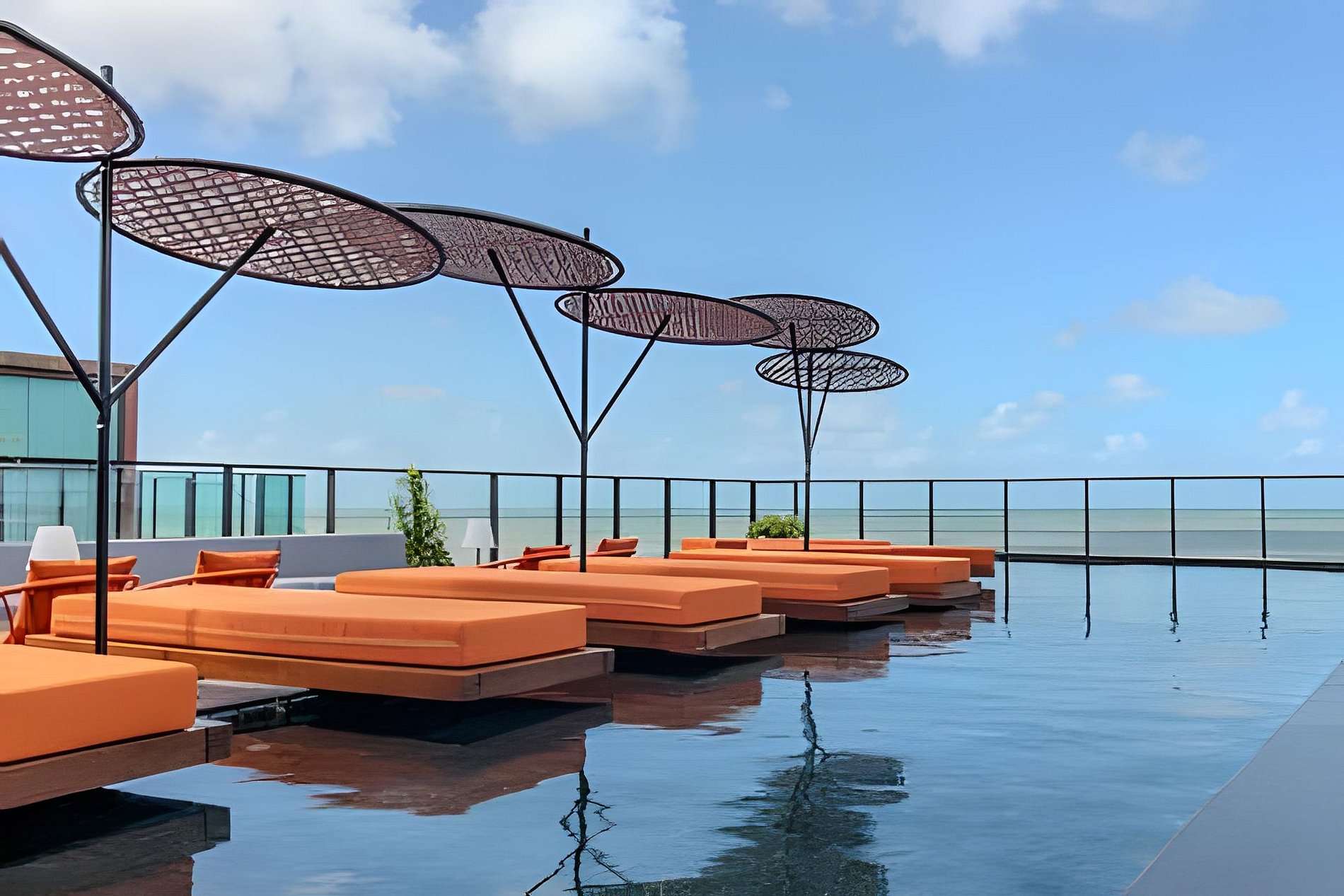 - Piscina e Área gourmet na cobertura com vista panorâmica para o mar