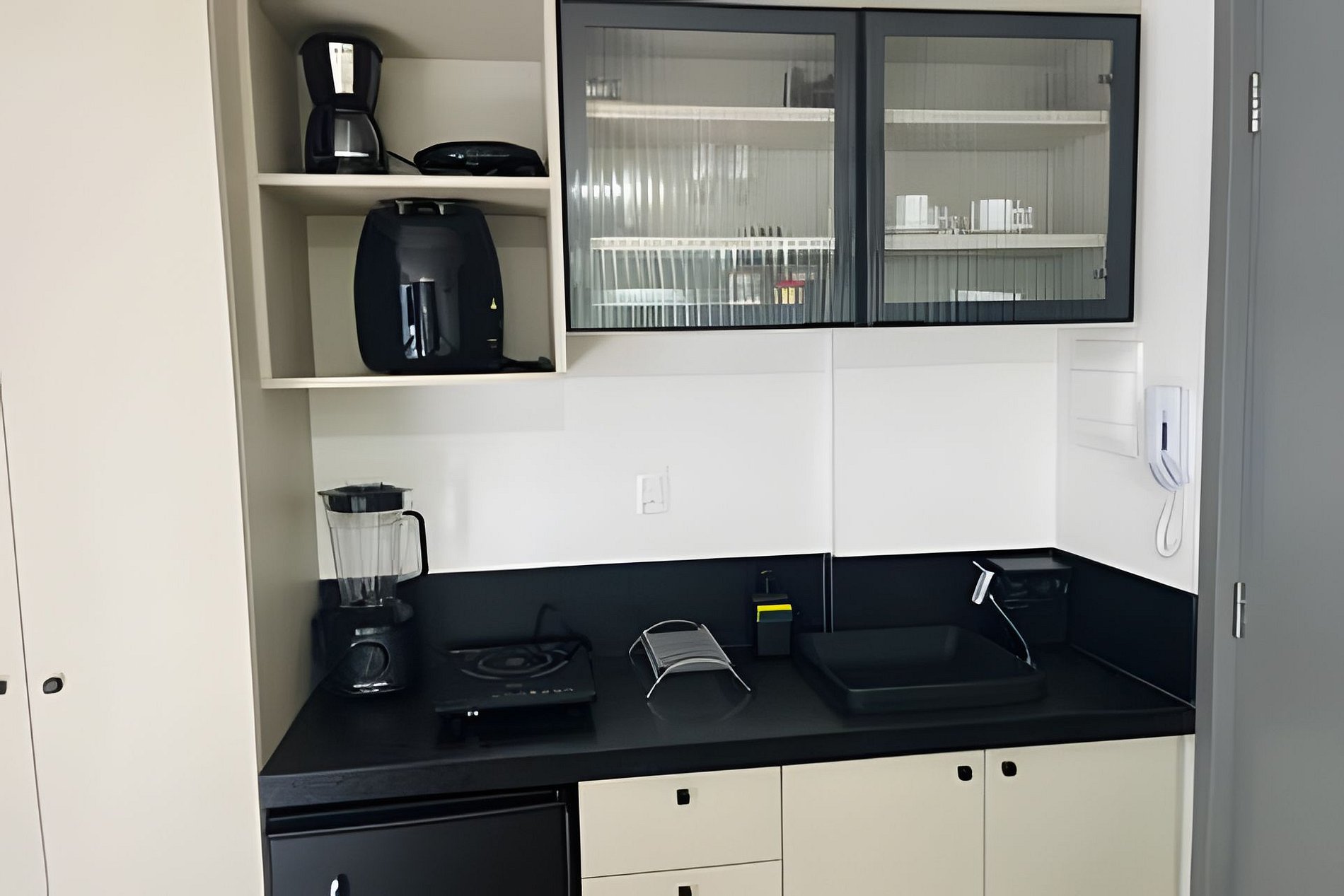 - Itens como detergente, esponja, escorredor de pratos, pano de prato e perfex (No item comodidade não dispomos de óleo, tigelas, vasilhas, pimenta e Hashi)