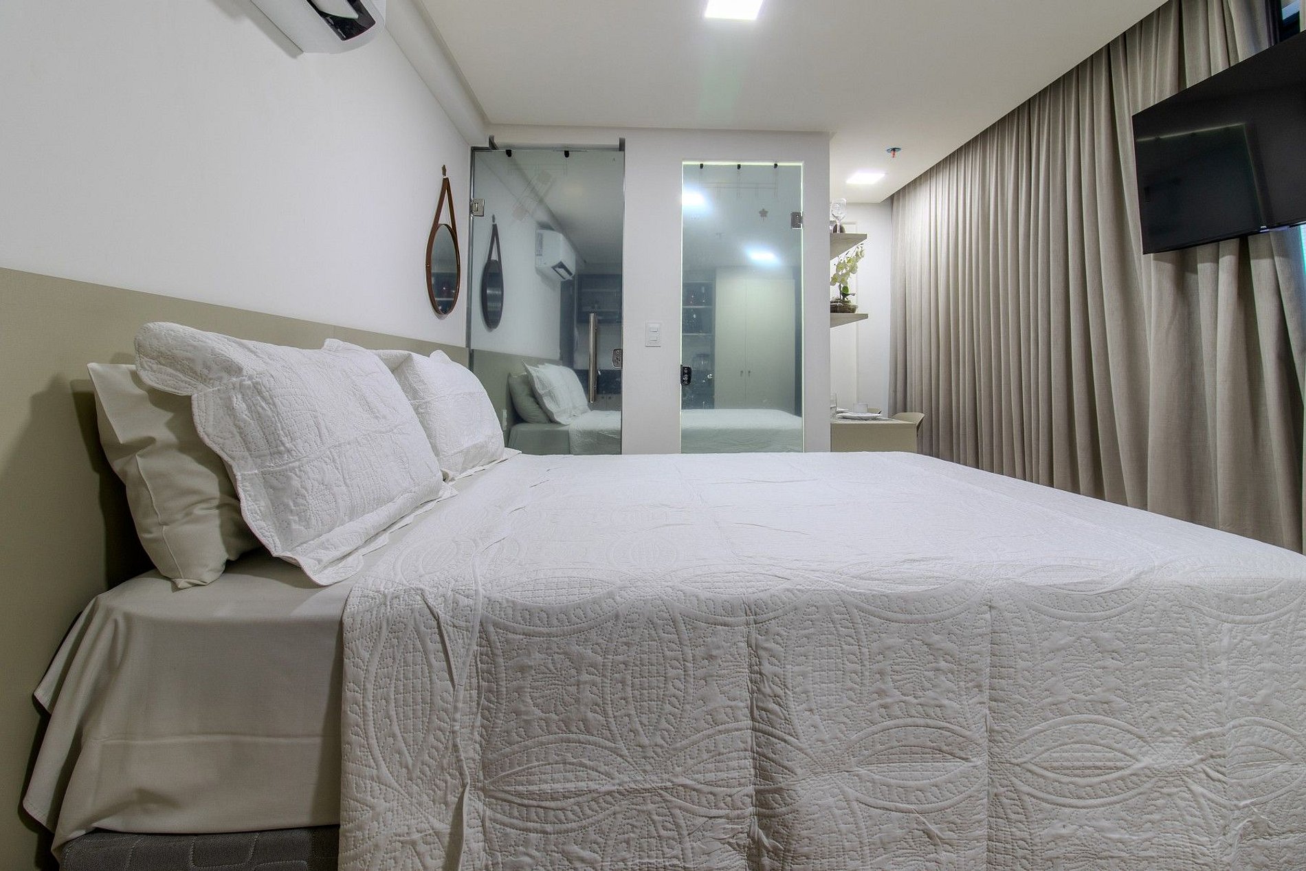 O espaço acomoda confortavelmente 3 hóspedes, sendo 100% equipado e funcional.