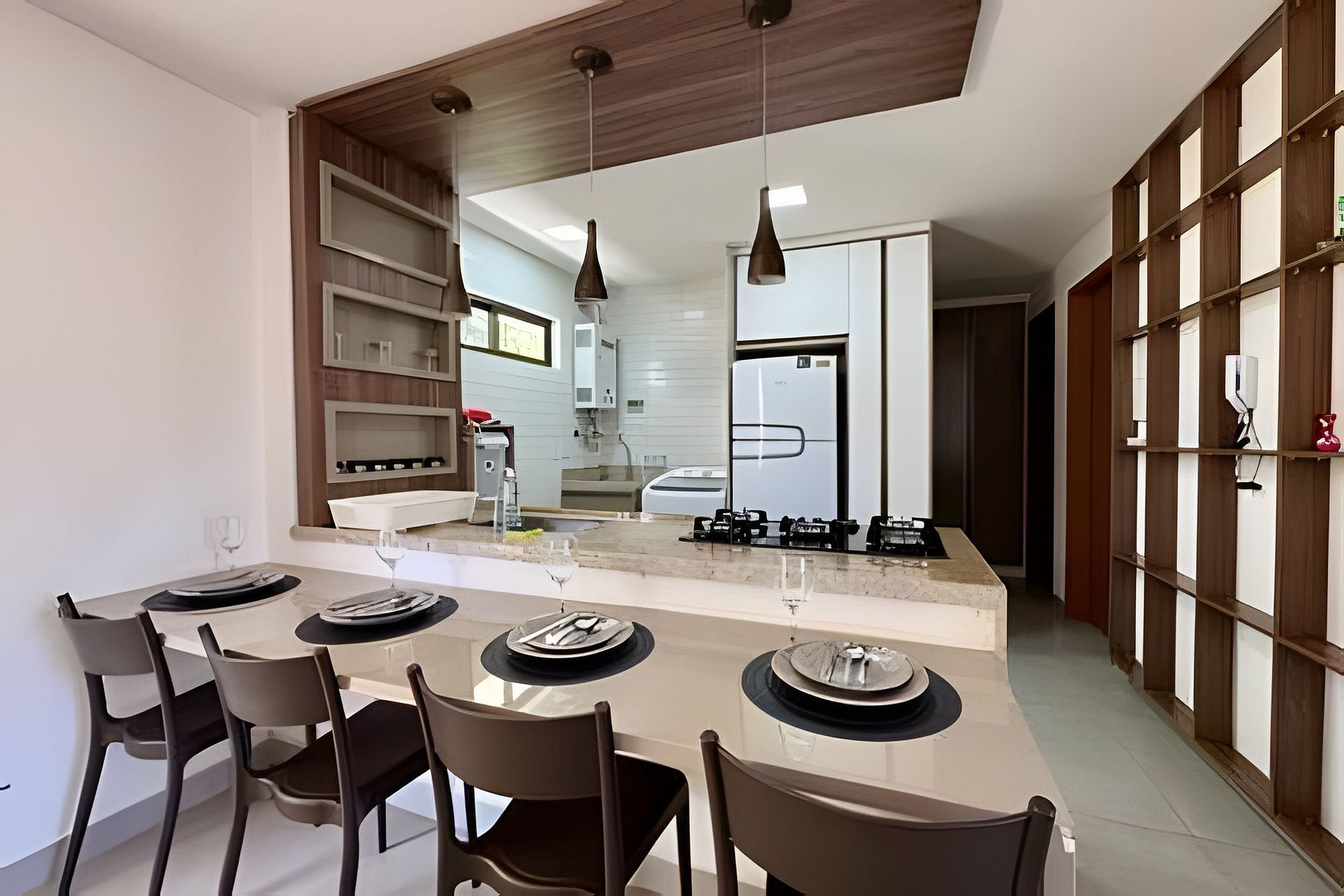 - Cozinha completa com Micro-ondas, Fogão, Geladeira e Sanduicheira. Além de diversos utensílios domésticos, como pratos, copos, talheres e jogo de panelas básico. (No item comodidade não dispomos de óleo, tigelas, vasilhas, pimenta e Hashi).