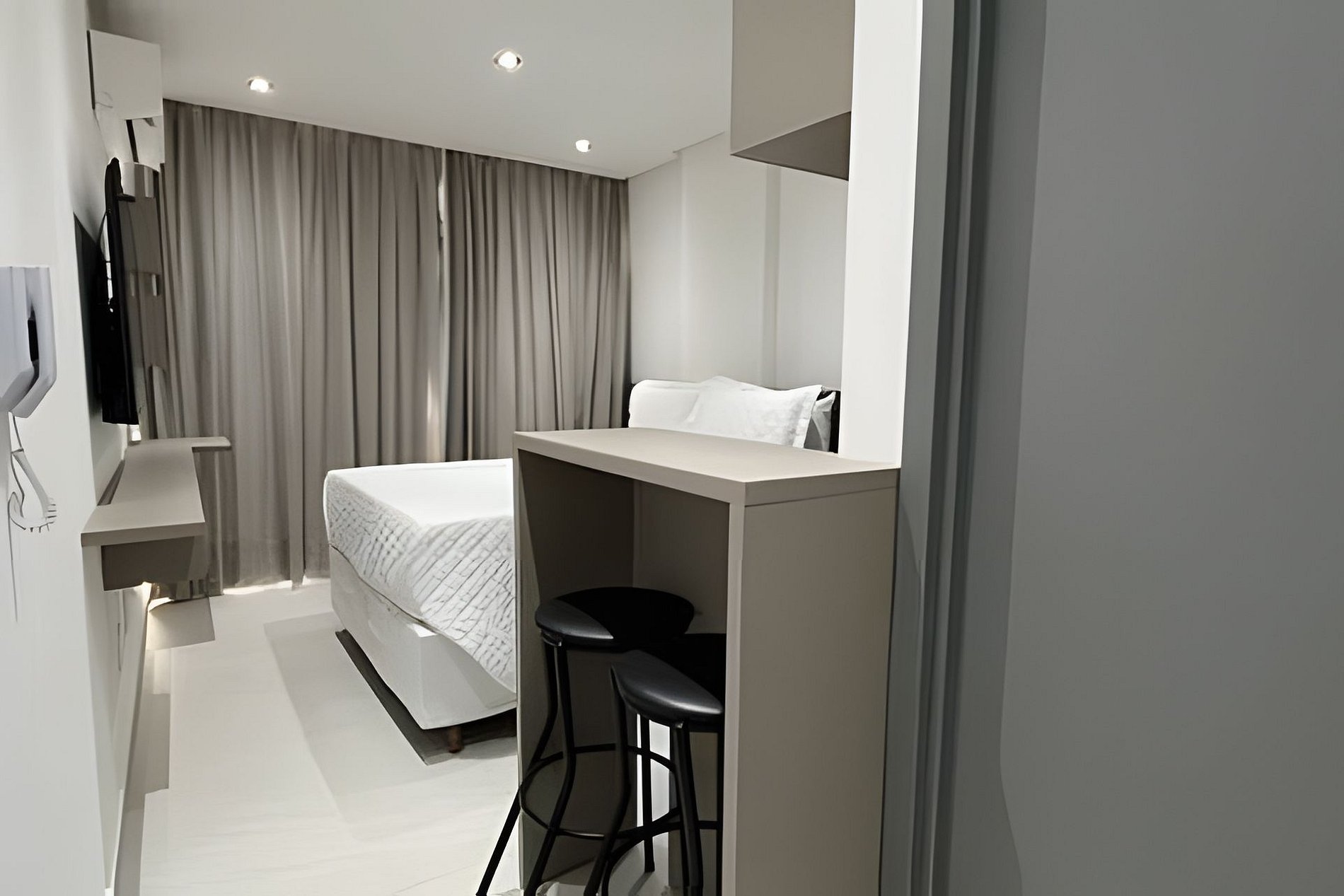 - Quarto com cama casal SmarTV, Ar-condicionado e Guarda-roupa;
