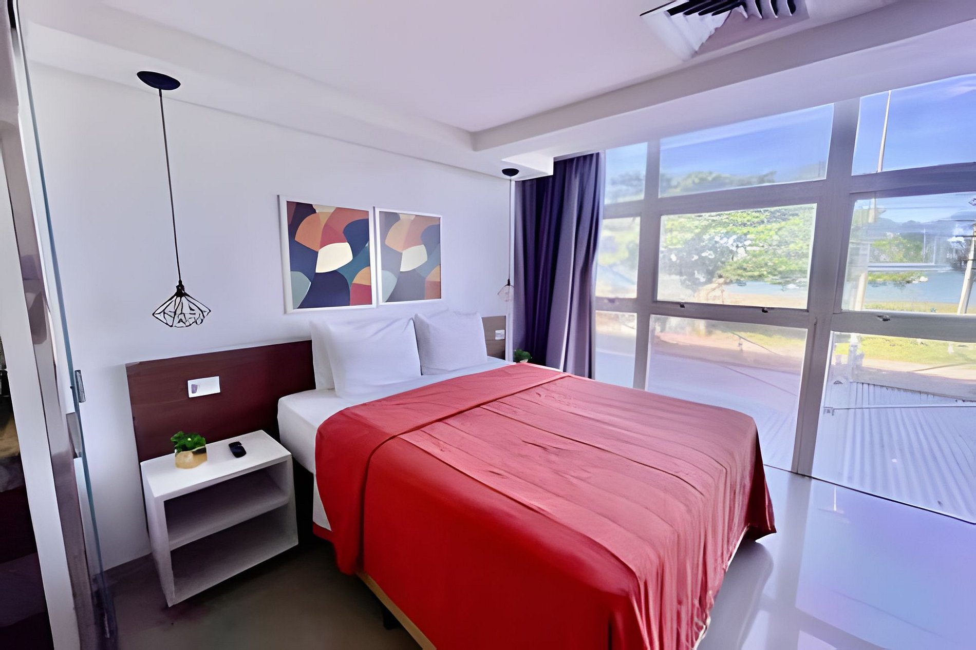 - Quarto com cama tamanho Queen, SmartTV, Ar condicionado e janelão com vista frente mar;