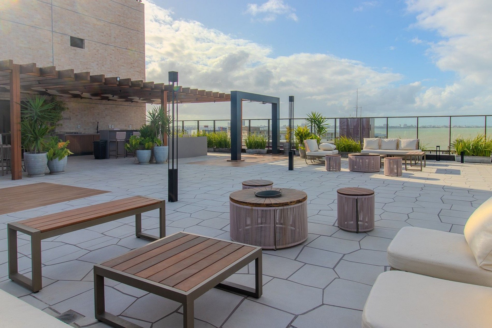- Piscina e Área gourmet na cobertura com vista panorâmica para o mar;