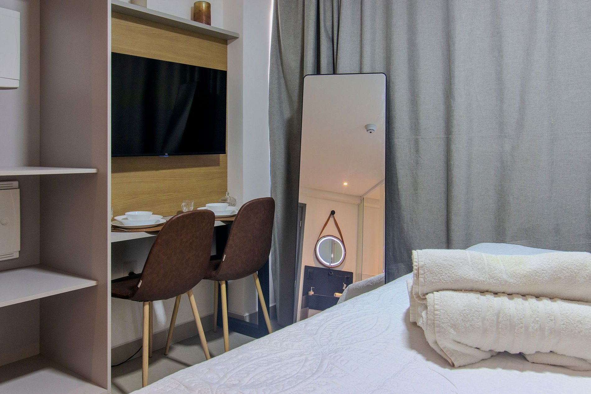 Você terá a disposição cozinha equipada, enxoval completo de cama e banho, Wi-Fi privativo, SmarTV, vaga de garagem interna rotativa e diversas outras comodidades essenciais ao seu bem estar!