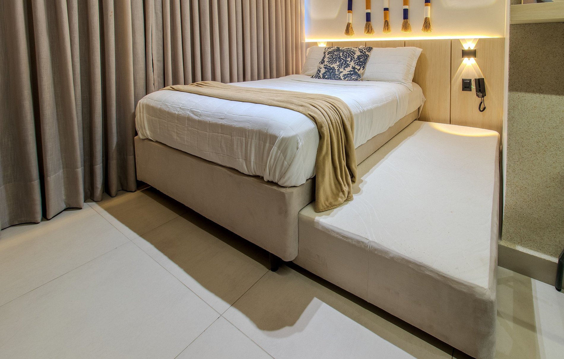 - 1 Cama casal com 1 cama de solteiro acoplada;