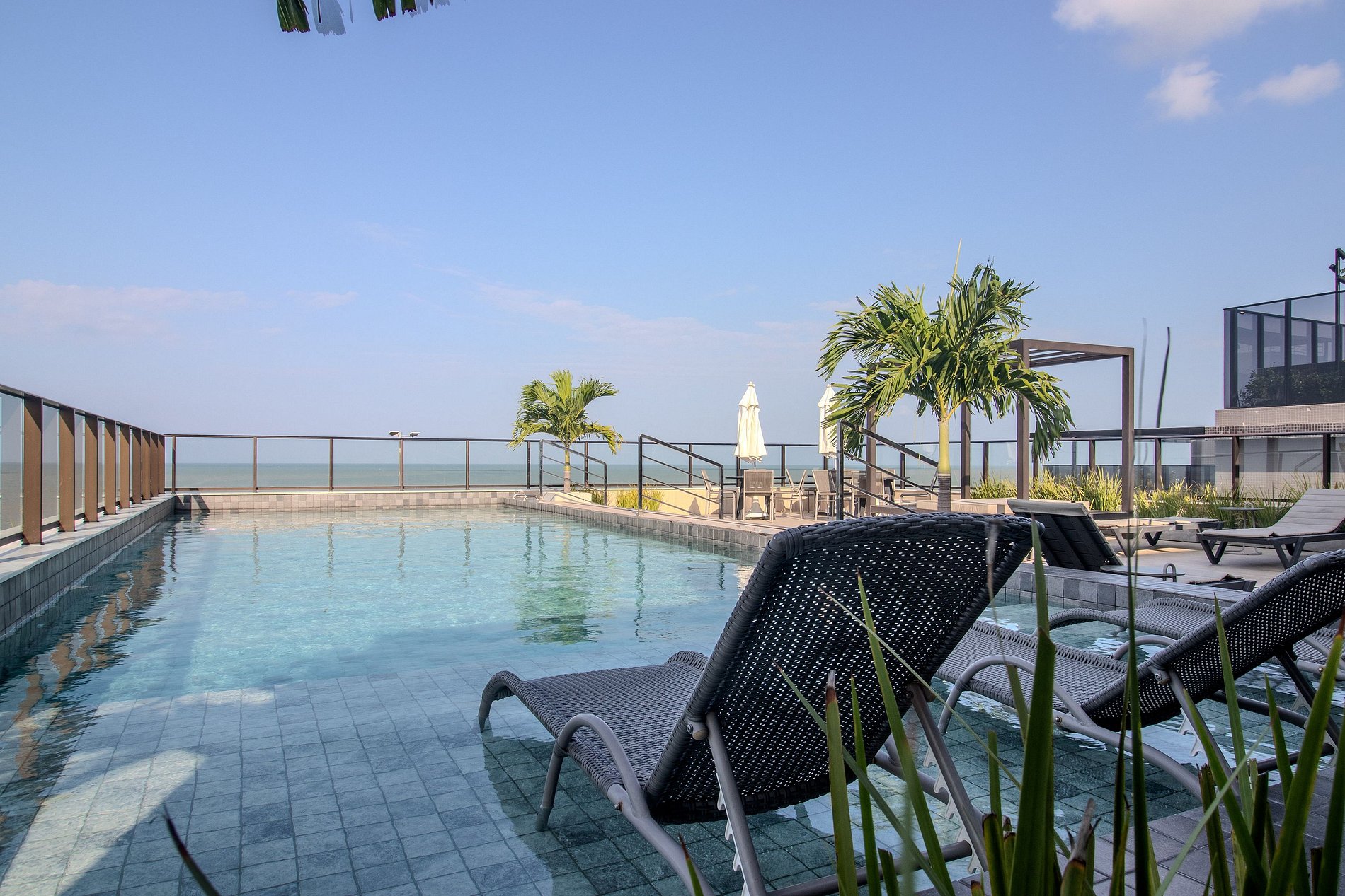 - Piscina na cobertura com vista panorâmica para o mar;